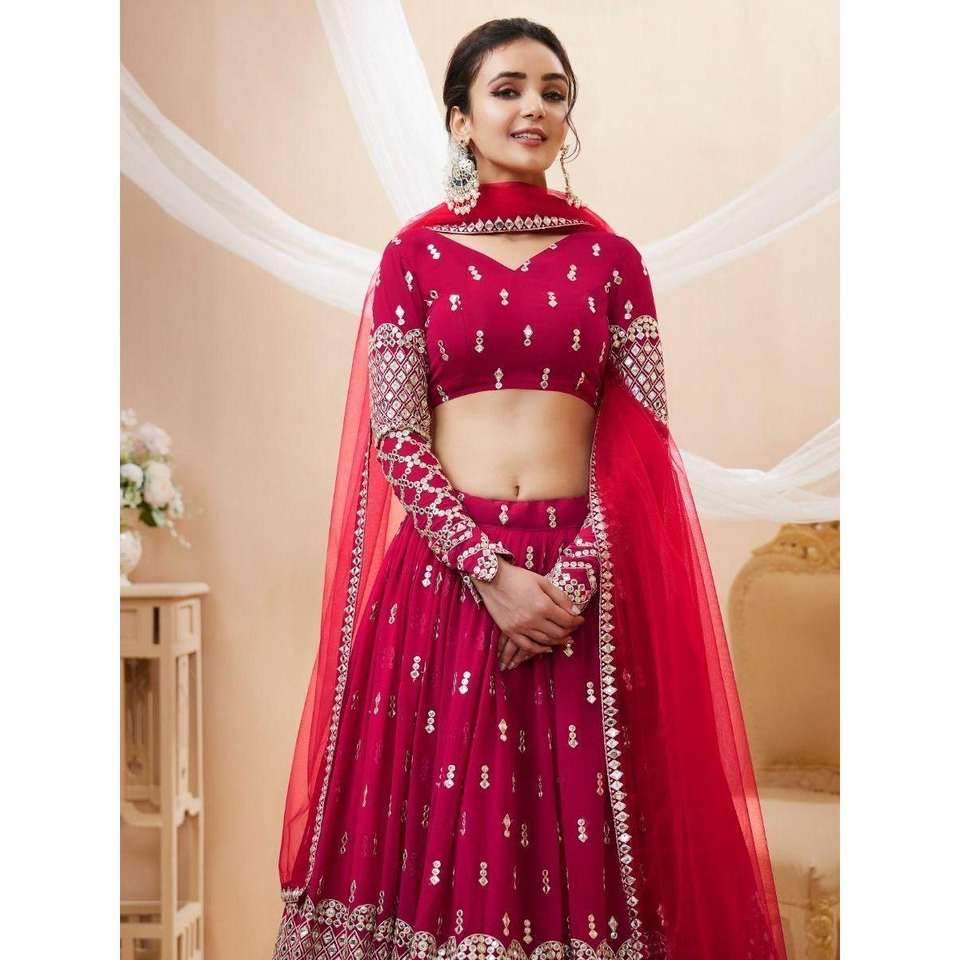Fantastique Rose Chaud Paillettes Georgette Wedding Wear Lehenga Choli Robes De Soirée Élégantes