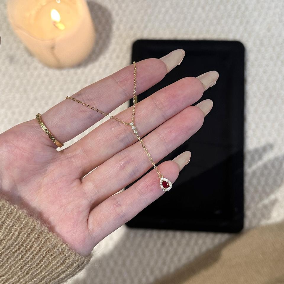 Collier pendentif goutte d'eau en argent massif S925 avec perle blanche australienne et chaîne claviculaire en Y