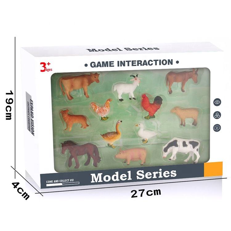 Ensemble de Figurines d'animaux de ferme 12 pièces petit plastique réaliste assorti d'animaux de ferme pour les tout-petits et les enfants Boîte de fenêtre/carton standard d'exportation