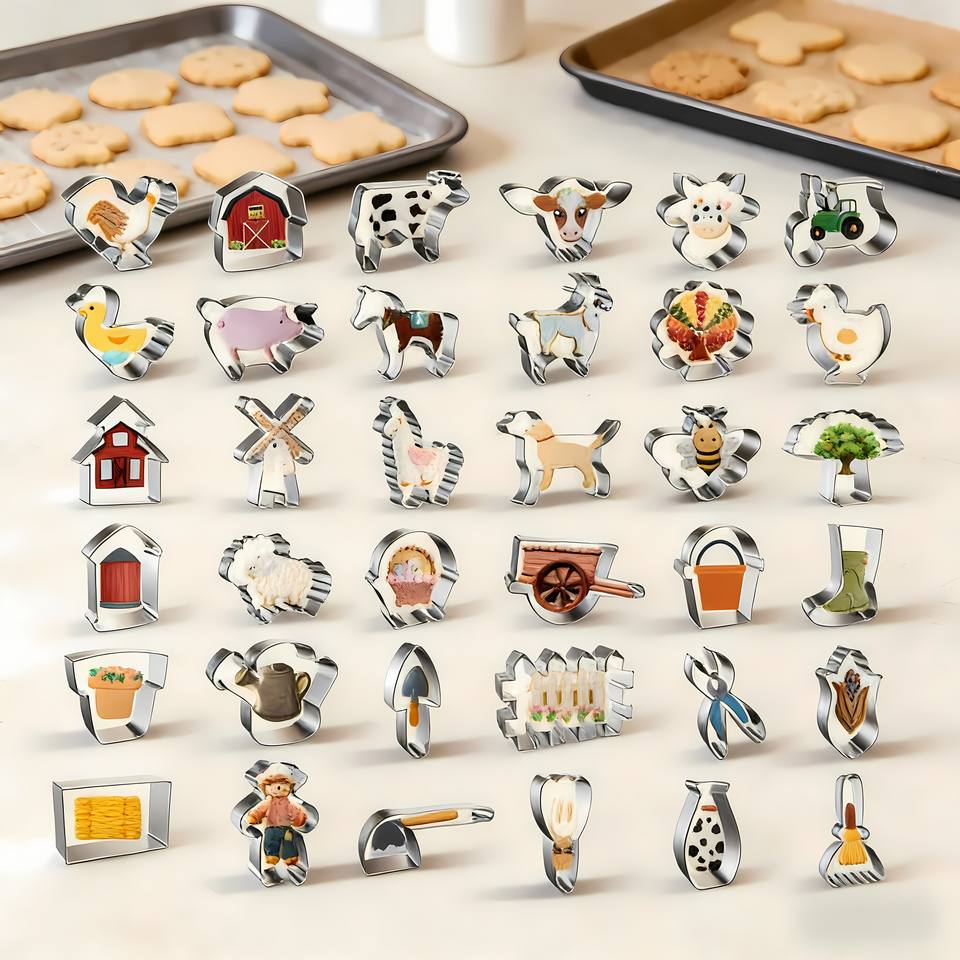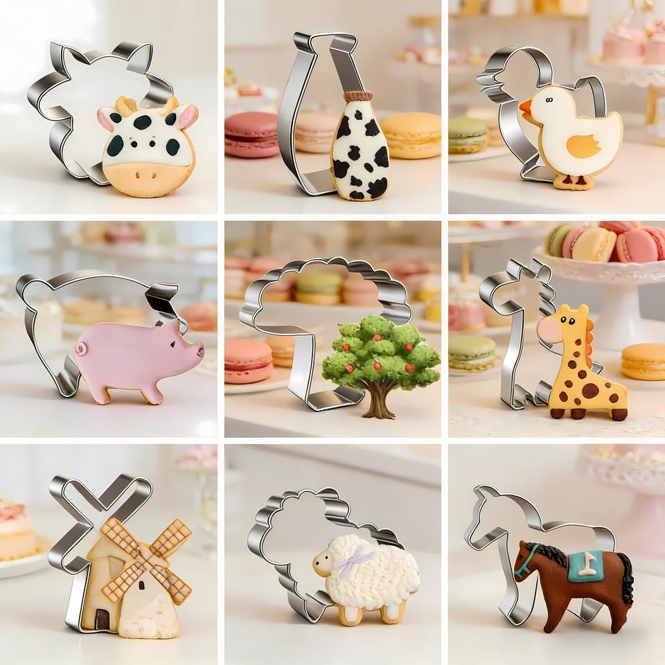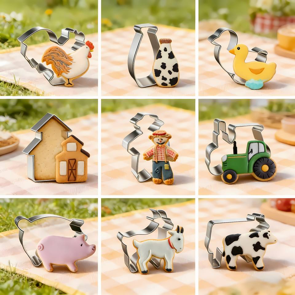 Emporte-pièces Animaux de la Ferme en Acier Inoxydable : Coq, Vache, Cochon, Agneau, Cheval, Grange, Tracteur – Moule à Biscuits Lavable au Lave-Vaisselle – Outils de Pâtisserie DIY