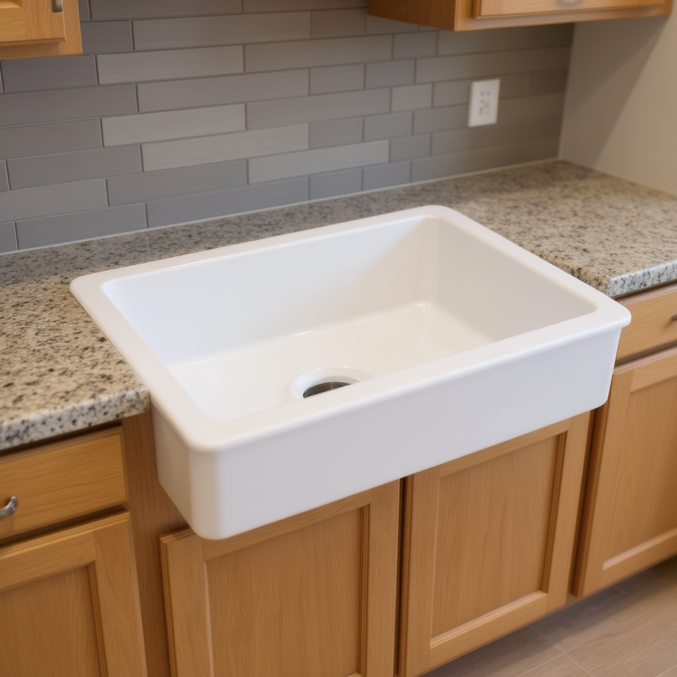 Évier de cuisine en céramique blanc style ferme, 30 po x 19 po, à cuve unique, à encastrer, rectangulaire