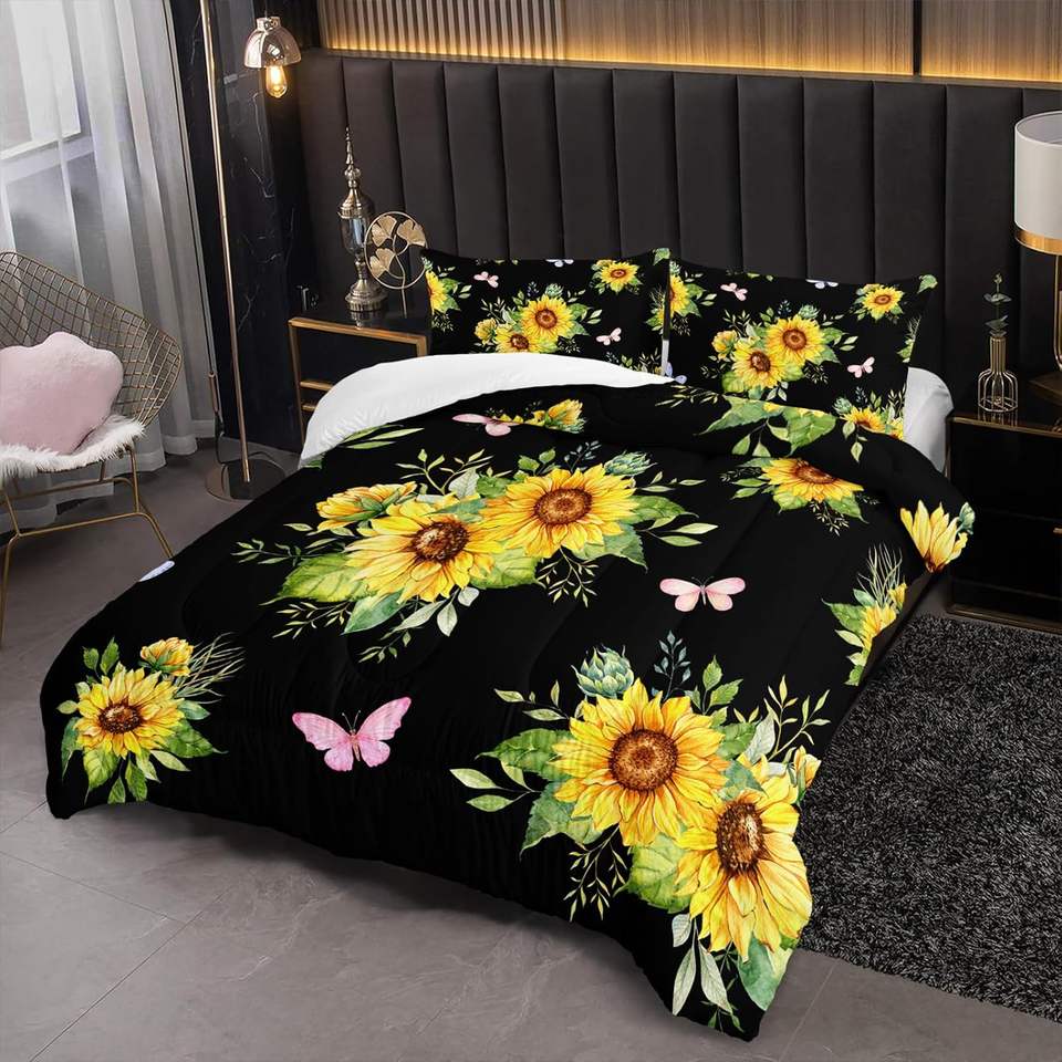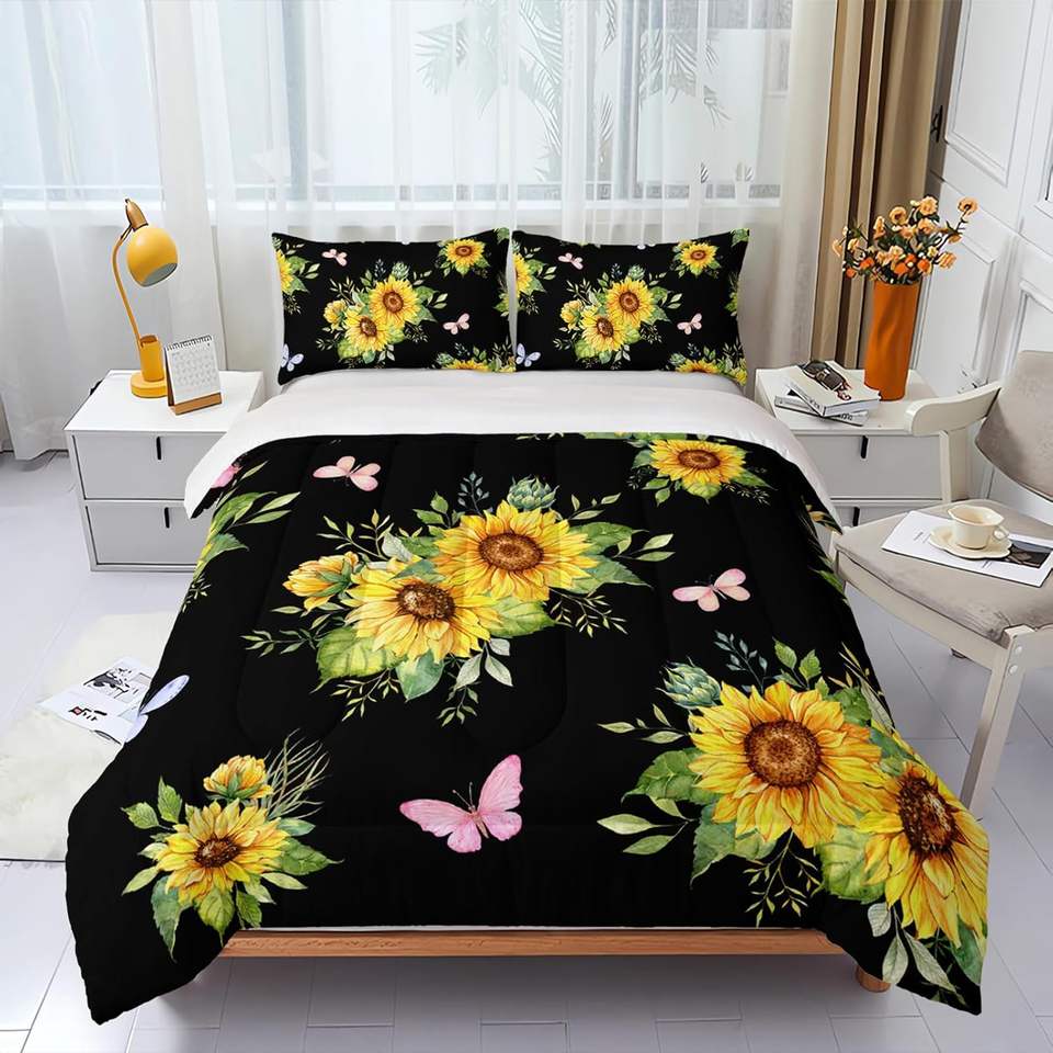 Farmhouse Chic Ensemble de couette en microfibre de taille jumelle 3 pièces Literie toutes saisons imprimée florale de tournesol pour tous les Noël tissés
