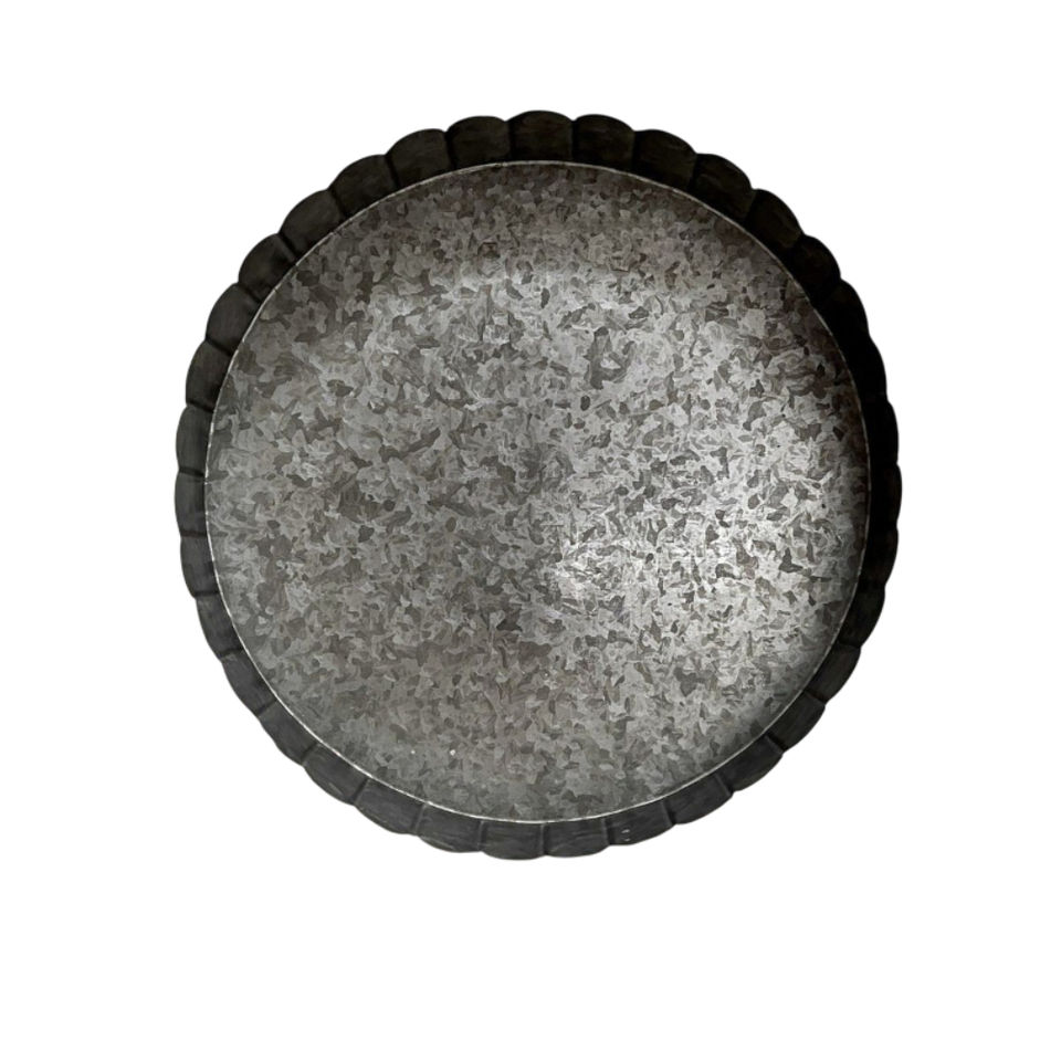 Plateau de service rond en métal galvanisé style ferme avec poignées en corde de jute, plateau décoratif en acier galvanisé pour la maison et la cuisine