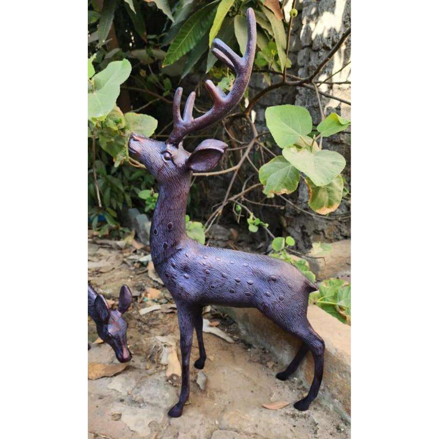 Life Size Antique Reindeer Sculpture Set of 2 Decorative Bronze Reindeer Figurine For Christmas Supplies Home Garden Decoration