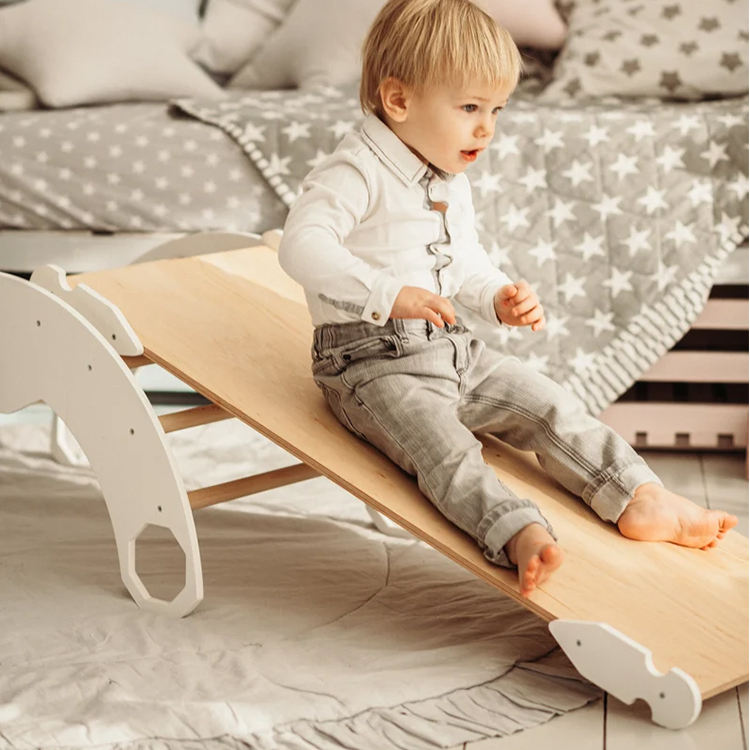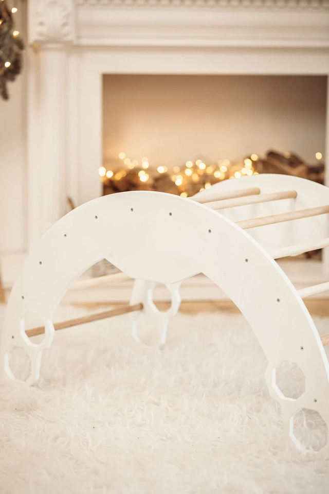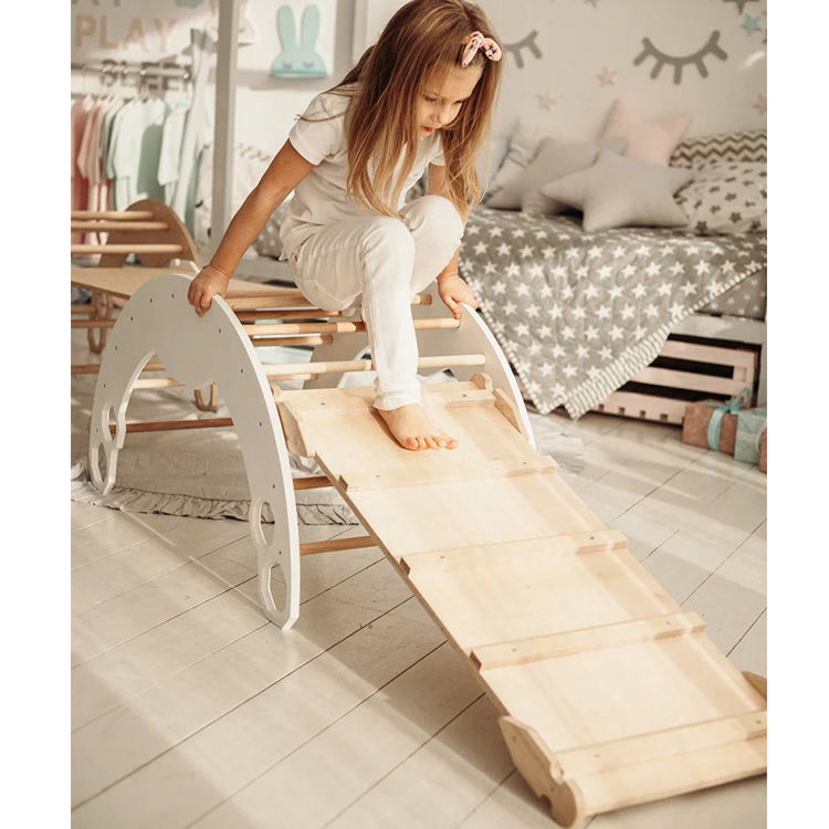 Farmhouse-Inspired Montessori Furniture Toddler Bed with Wood Arch Ramp & Rock Climbing Practical Life Lessons for Kids