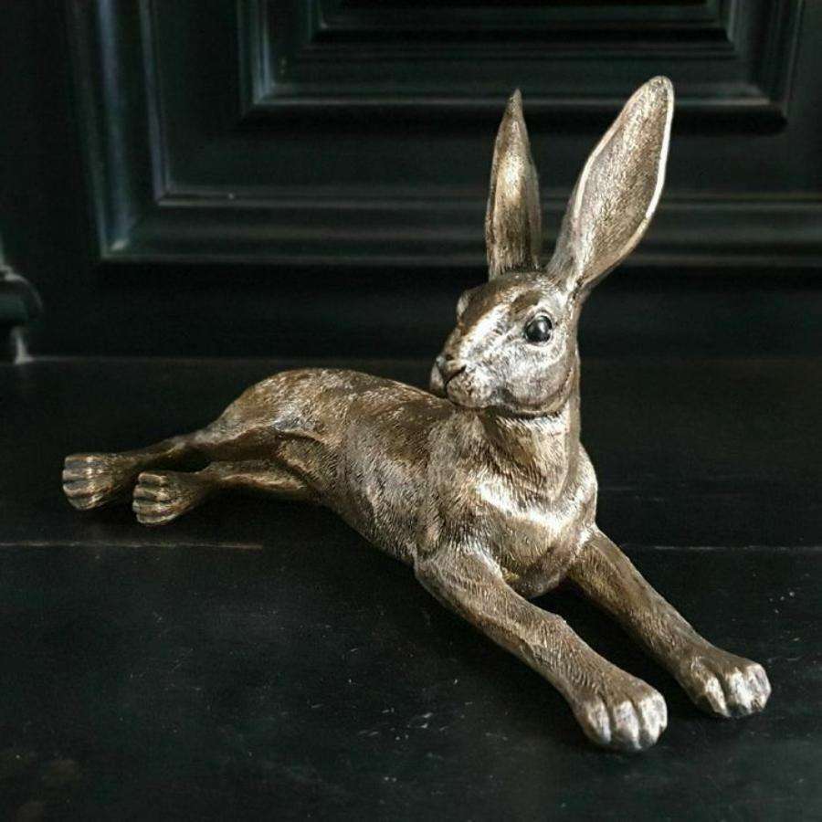 Bronze Bunnies Sculpture Decorative Metal Laying Rabbit Figurine Easter Decoration Figurine Home Garden Decor Ornaments