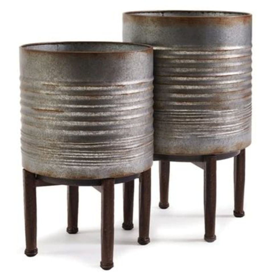Support de plantes de style farmhouse avec design côtelé, finition en fer antique argenté et brun pour la décoration intérieure, extérieure, de la salle et du jardin