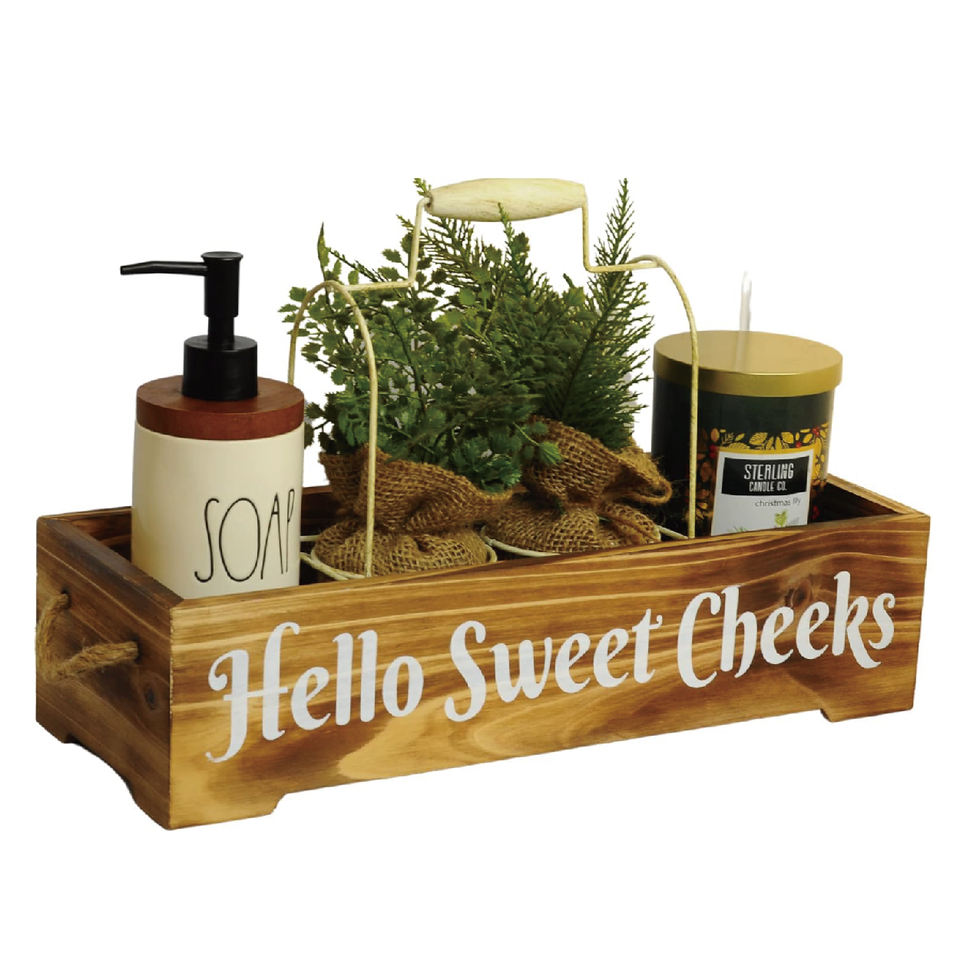 Ferme rustique bonjour doux joues porte-papier hygiénique accessoires de salle de bain porte-shampooing multifonction organisateur étagère en tissu