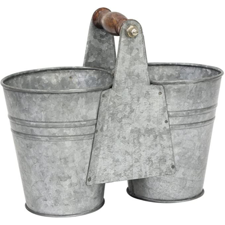 Organisateur de couverts en métal galvanisé blanc rustique style ferme avec poignée en bois pour cuisine