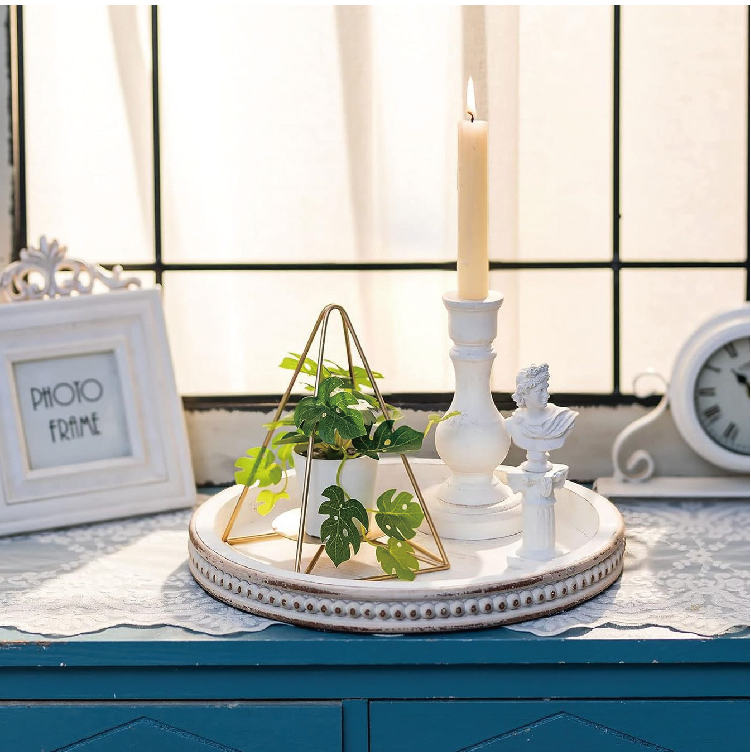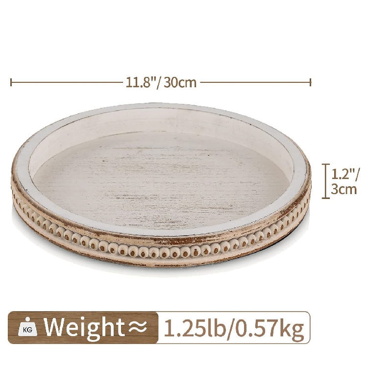 Plateau en bois rustique de style fermier, rond, blanc, perlé, décoratif, plateau de service pour table basse, Ramadan, logo personnalisé