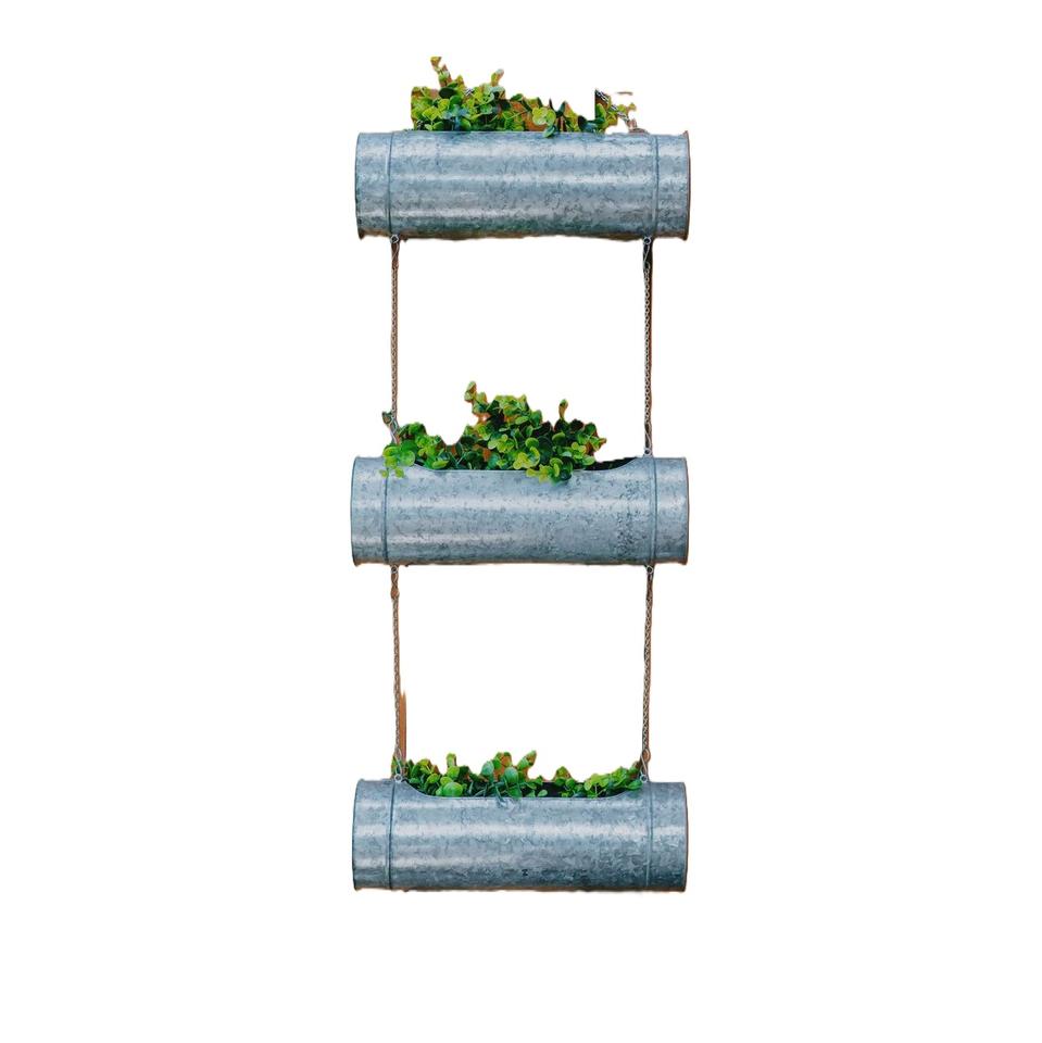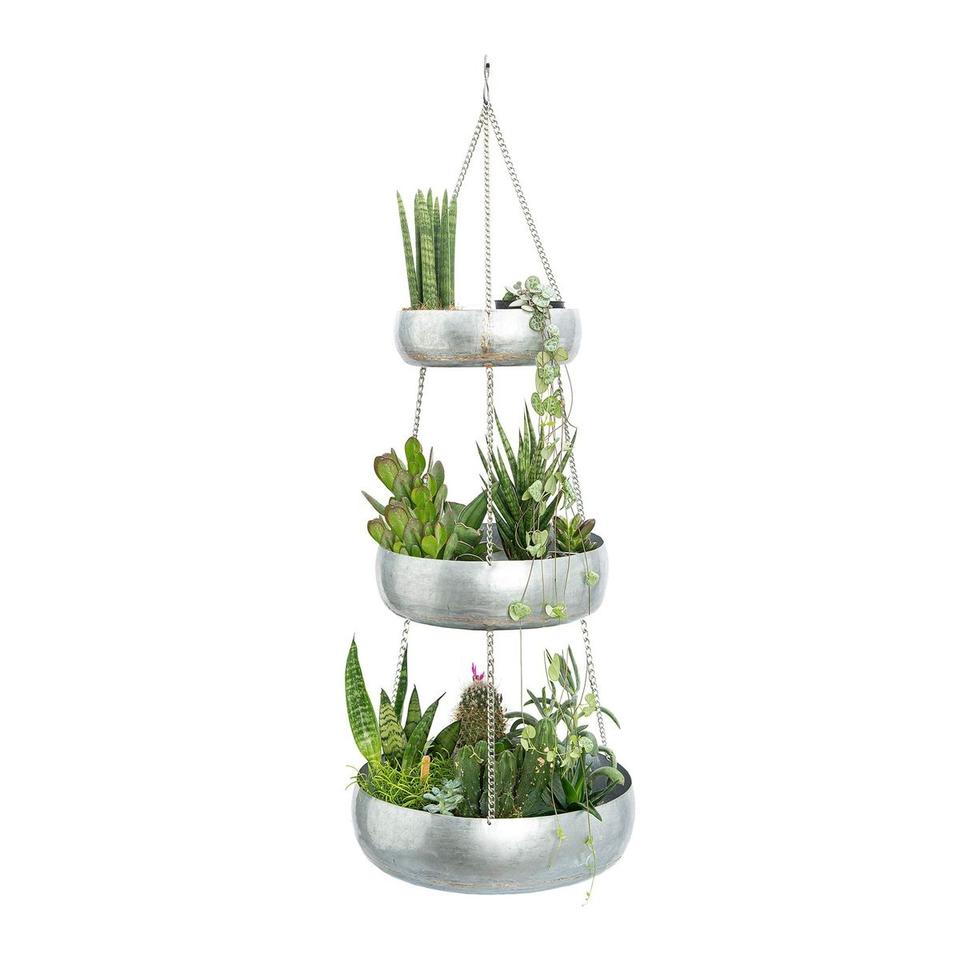 Jardinière suspendue à 3 niveaux style ferme, en métal galvanisé, 3 pots, pour l'intérieur et l'extérieur