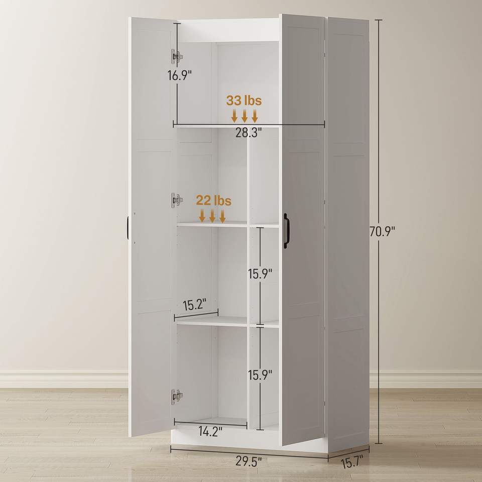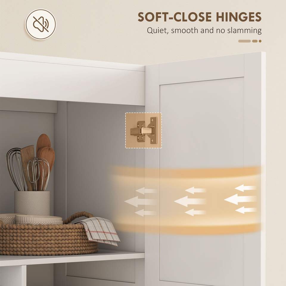 Armoire de rangement de cuisine de style farmhouse, 71 pouces de haut, blanche, avec charnières à fermeture douce et étagères réglables