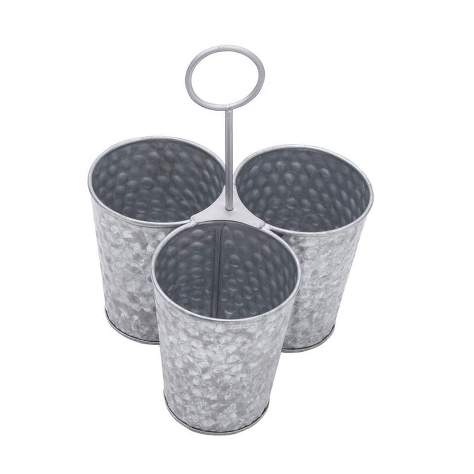 Porte-couverts en métal galvanisé style ferme, 3 compartiments, avec poignée en bois, organiseur d'ustensiles de cuisine pour table à manger