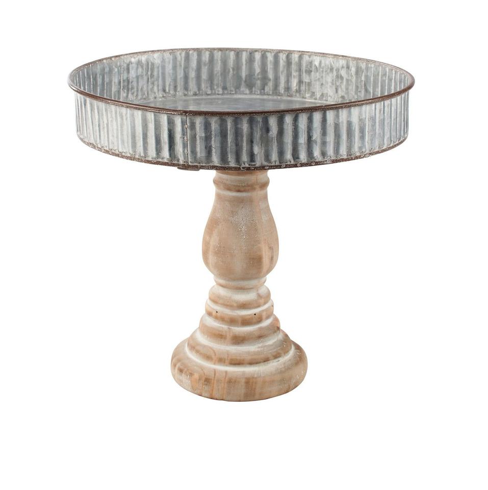 Support à gâteau en métal galvanisé style ferme avec bord festonné pour présentation sur table de desserts, plateau de service rond sur pied