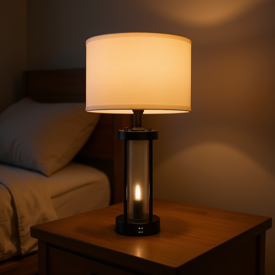 Lampe de table style ferme avec port USB, lumière de chevet LED 2700K blanc chaud, abat-jour cylindrique, base E26, commande par interrupteur