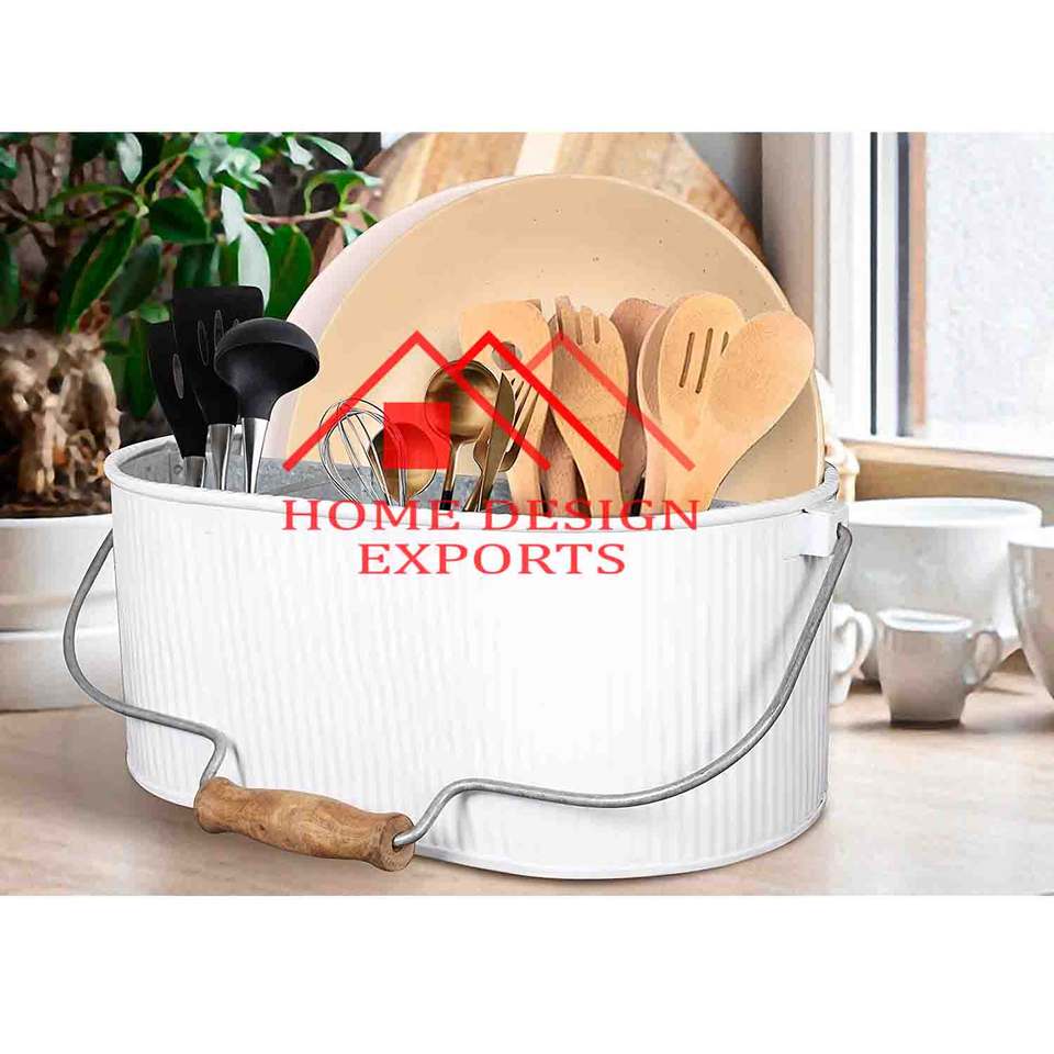 Farmhouse Tableware Utensil and Jewelry Caddy Galvanized Metal Powder Coated Utensil Serve Ware Holder for Tea and Coffee