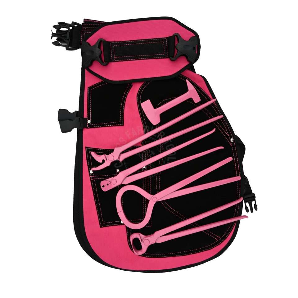 Caractéristique:Tablier de maréchal-ferrant rose confortable avec outils de maréchal-ferrant et kit de sabots