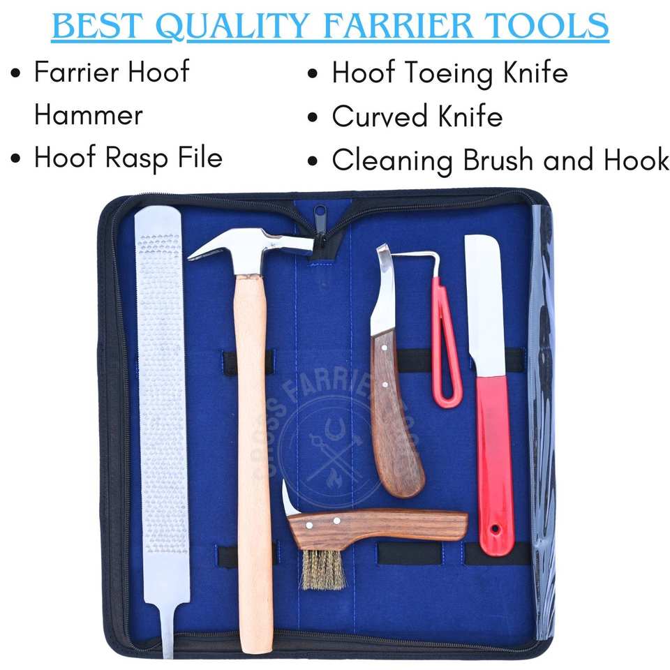 Mots-clés:Trousse d'outils de maréchal-ferrant, outils de coupe de sabots de cheval, ensemble de couteaux à sabot, maréchal-ferrant