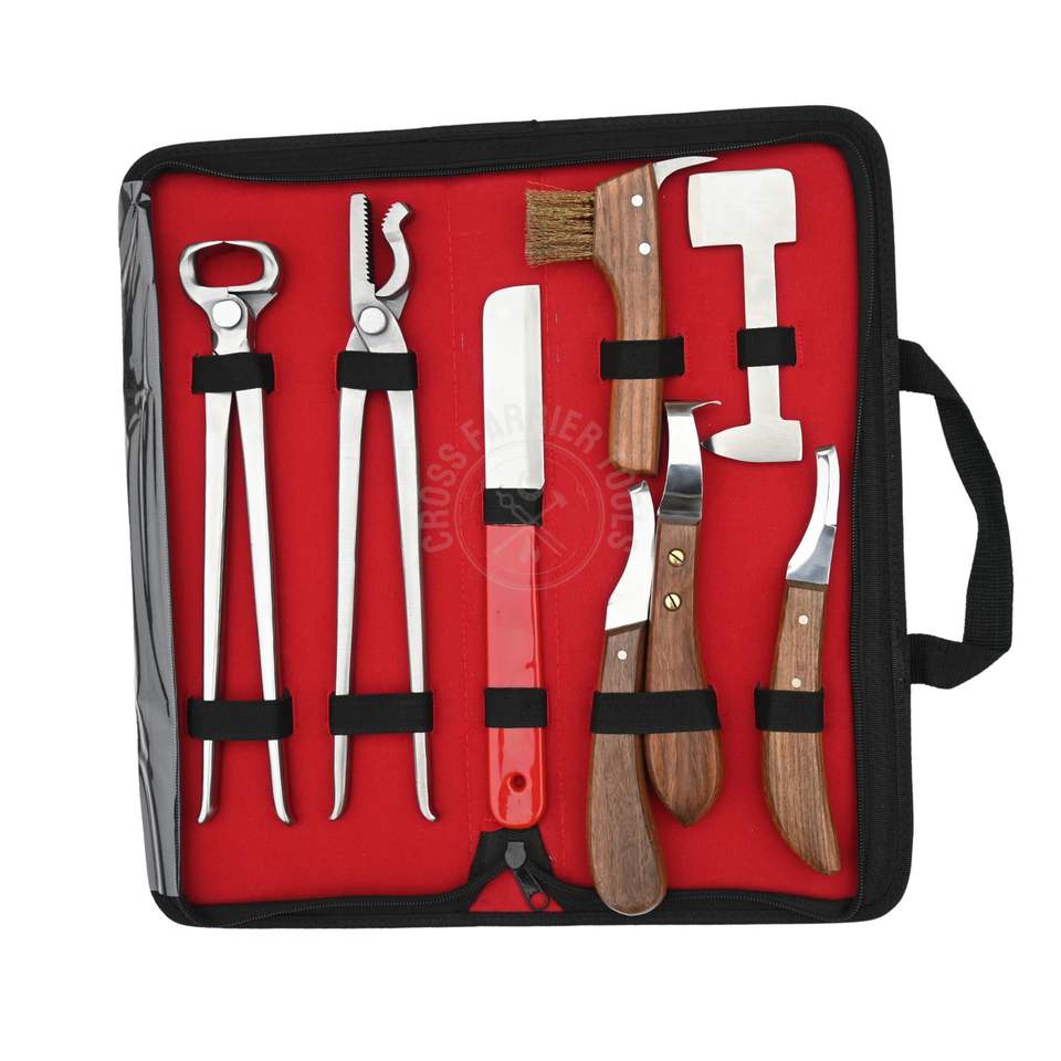 Trousse d'outils de maréchal-ferrant avec couteaux, polissoir et brosse, pince à sabot