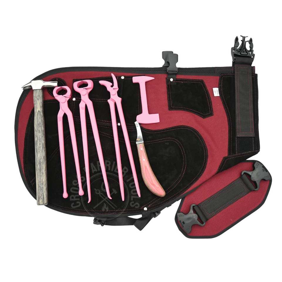 Kit d'outils de fermeur avec tablier de sécurité, cisaille à sabots de 14 pouces, couteau à sabots à lame en D, outil de dépose de sabots, pince à sabots courbée et marteau