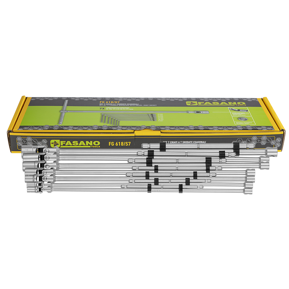Jeu de clés hexagonales à poignée en T Fasano, 7 pièces, avec douille articulée pour outils de réparation automobile