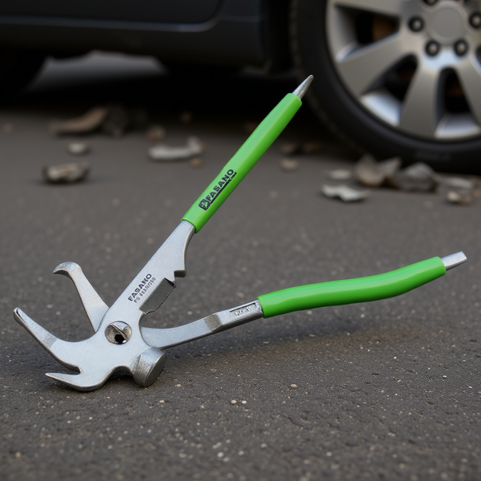 Outil de réparation de pneus Fasano pour pneus sans chambre à air avec poignée verte et corps métallique