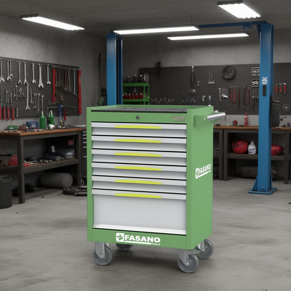 Armoire à outils roulante Fasano Tools à 6 tiroirs, en acier vert, chariot de rangement pour réparation automobile