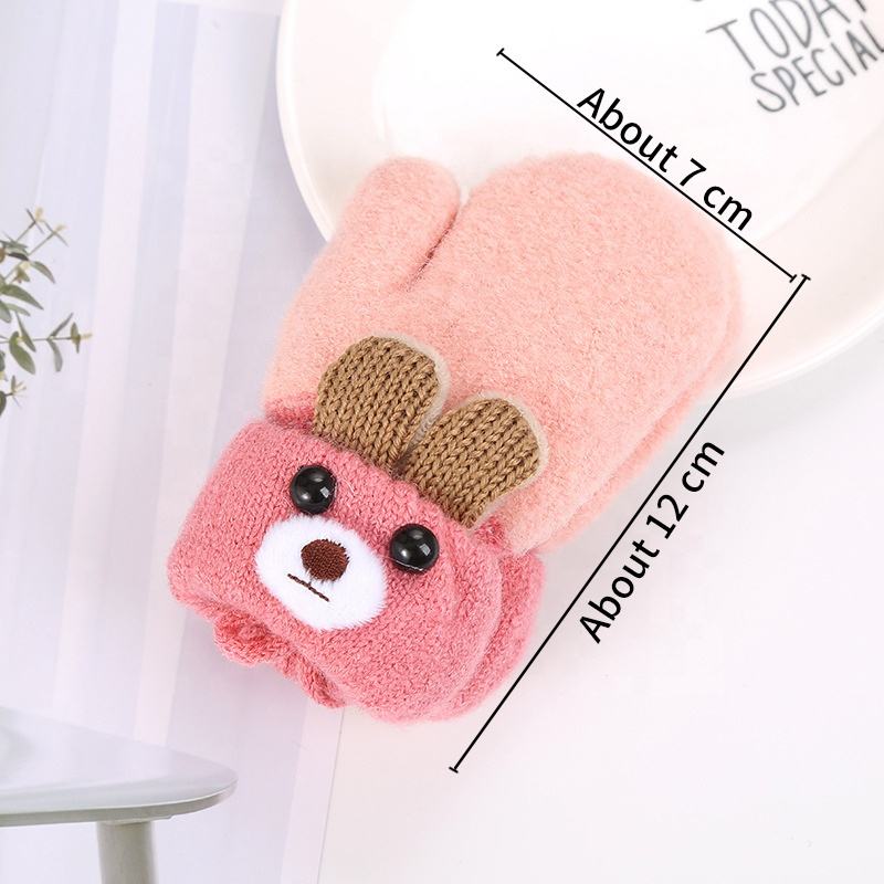 Fashion 0-3 Years Cute Bear Cartoon Baby Gloves Winter Knit Wool Newborn Mittens Velvet Thick Children's Kids Keep Finger Warm