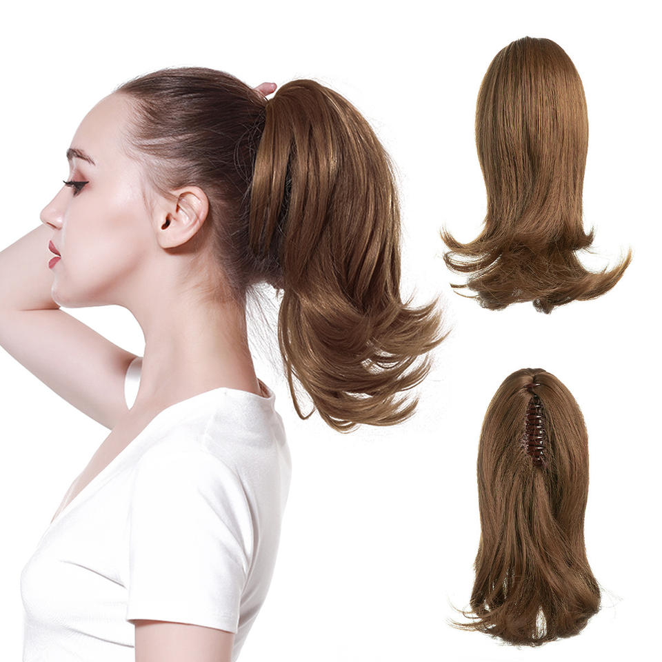 Extensions de cheveux synthétiques à cordon de serrage de 14 pouces, style queue de cheval avec filet de maintien arrière, pour une coiffure tendance