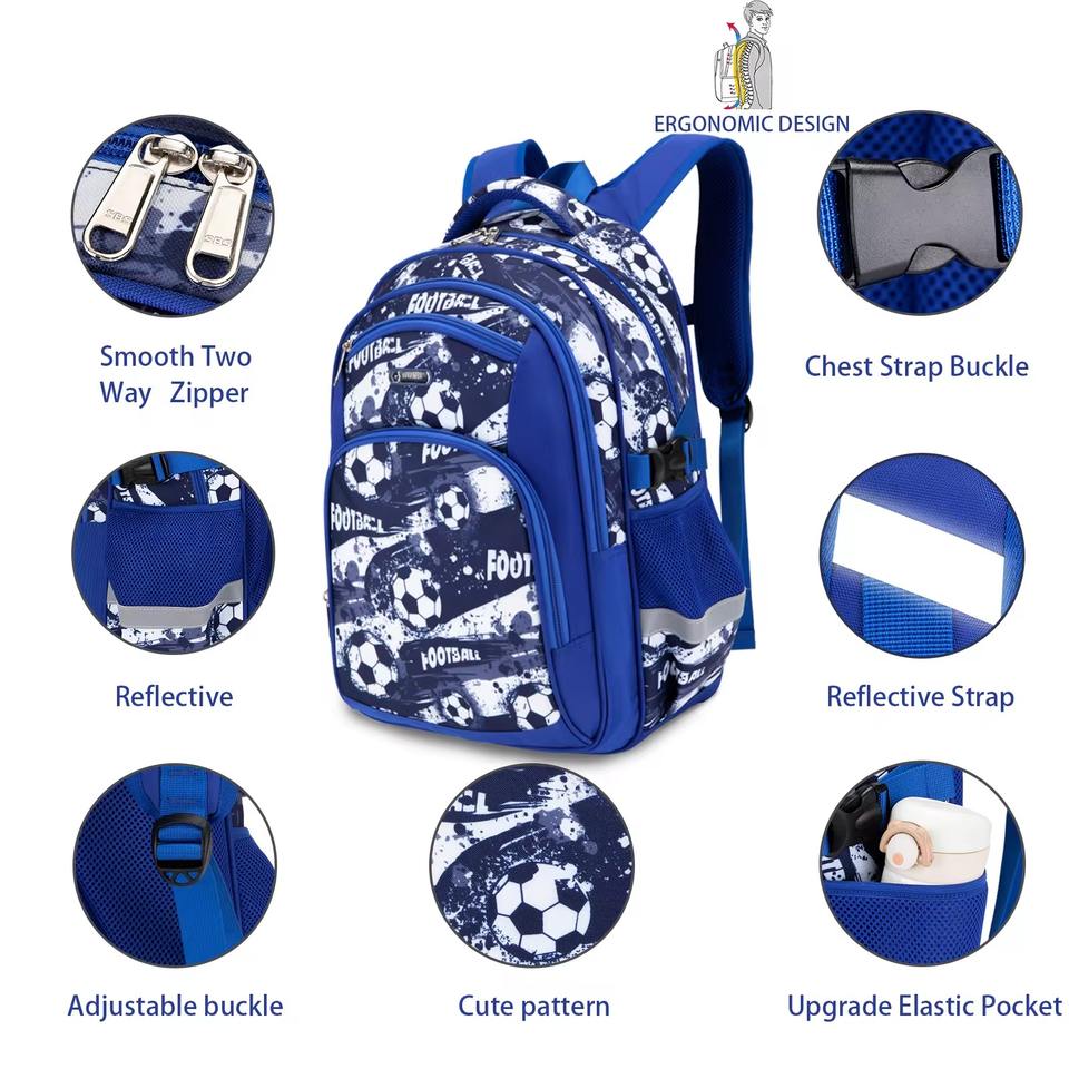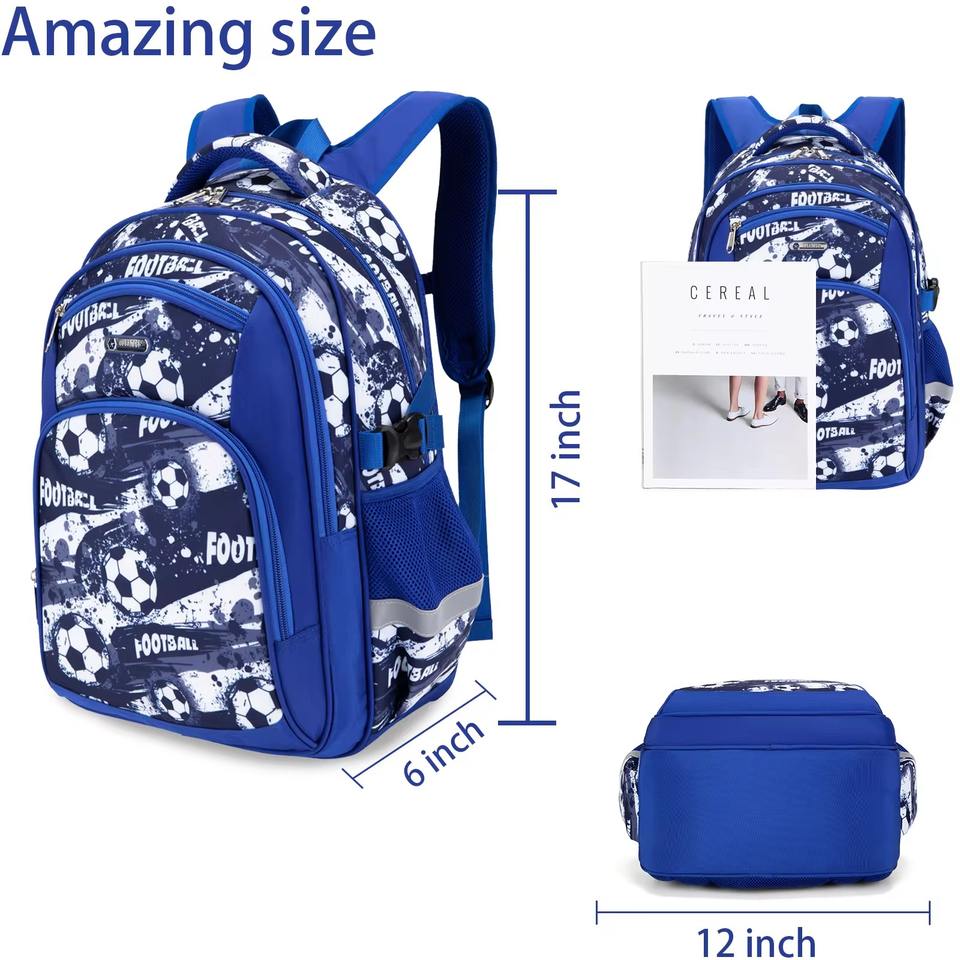 Mode 17 pouces bleu Football dessin animé cartable pour enfants étanche maternelle football garçons grande capacité sac à dos