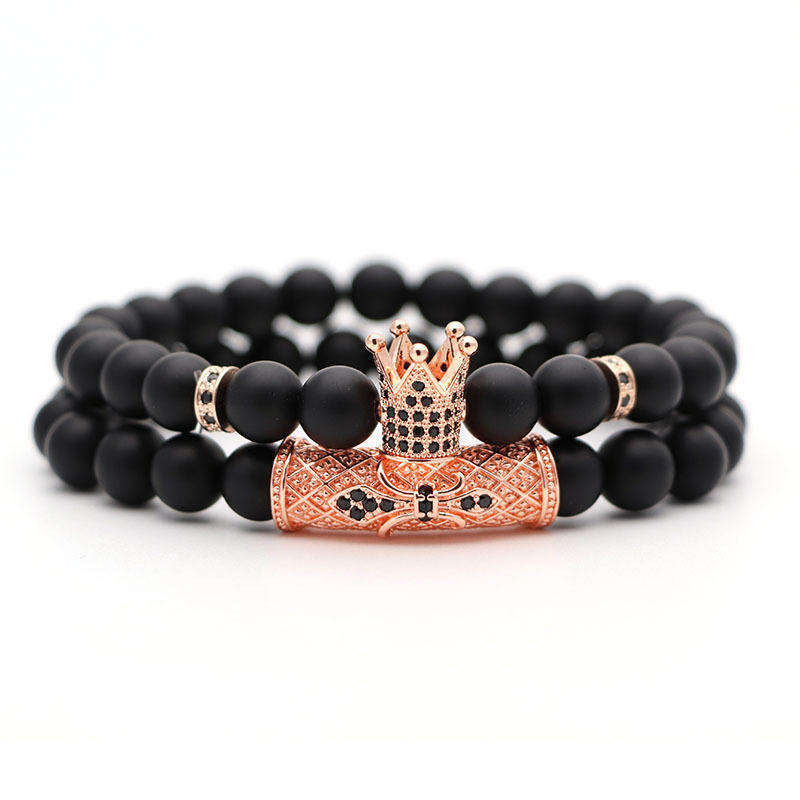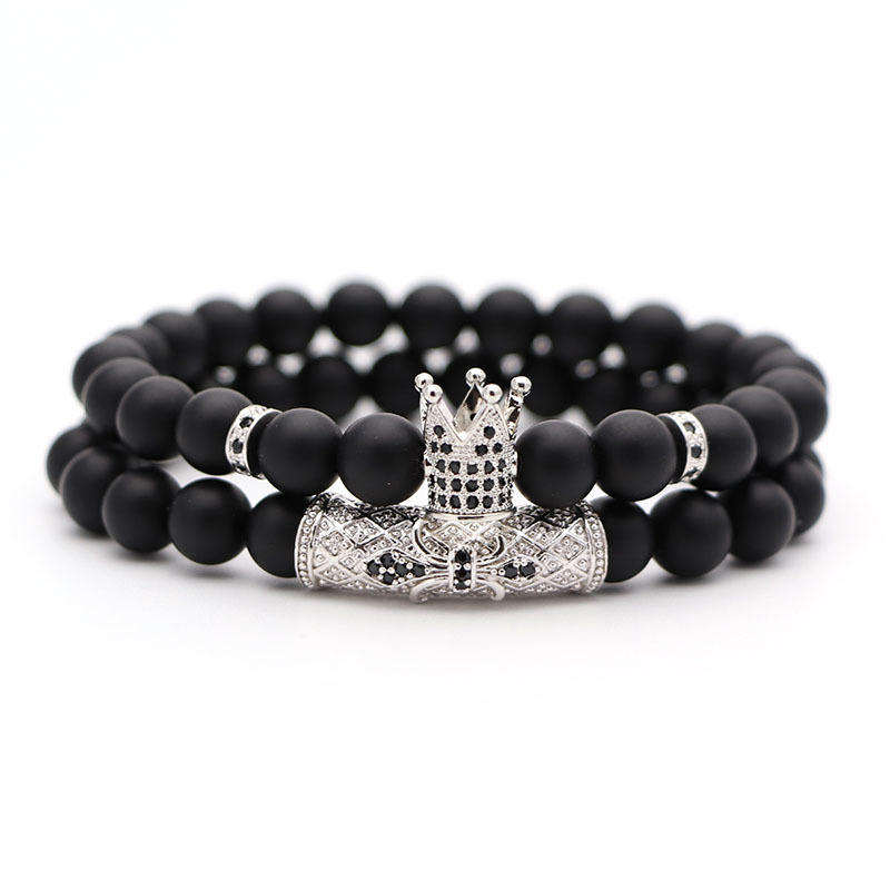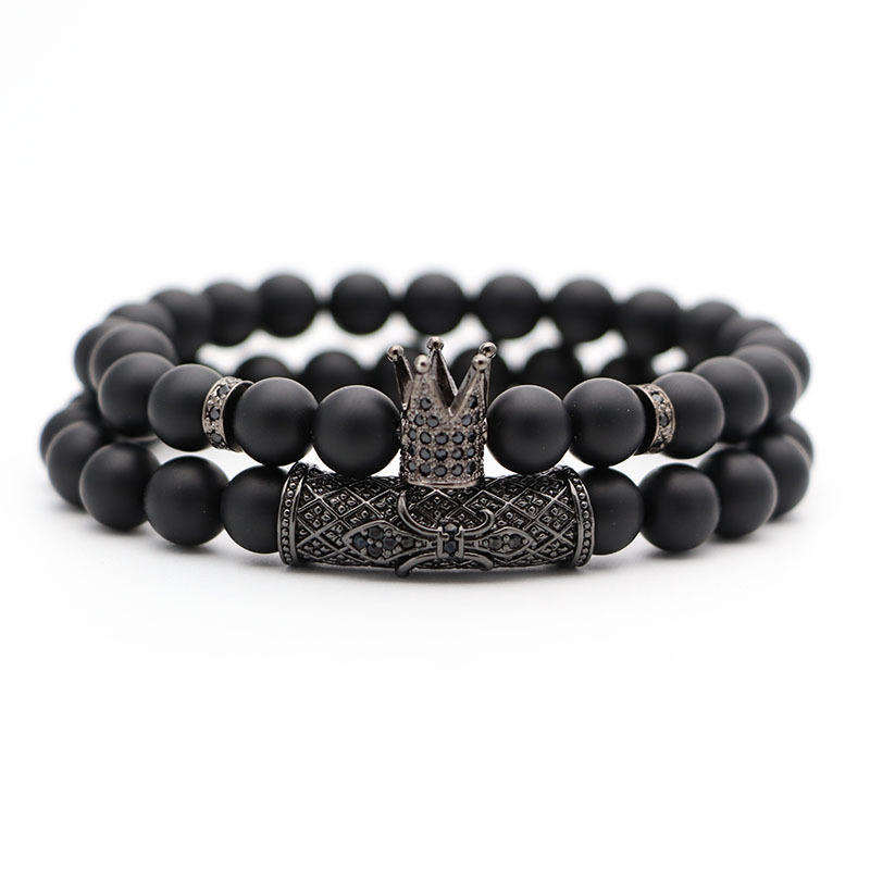 Bracelet en pierre de verre naturel pour hommes, perles noires classiques, pavé CZ 8mm, breloques Disco, Bracelets pour femmes, bijoux en or, 2 pièces/ensemble