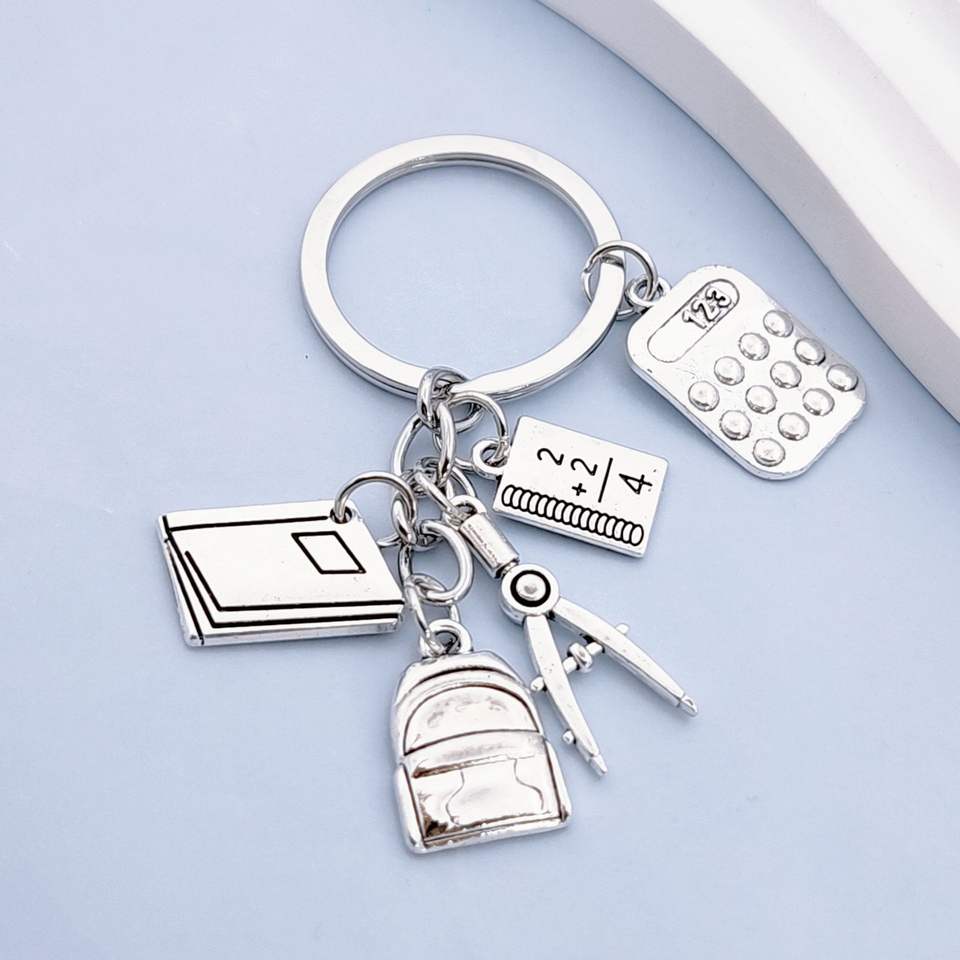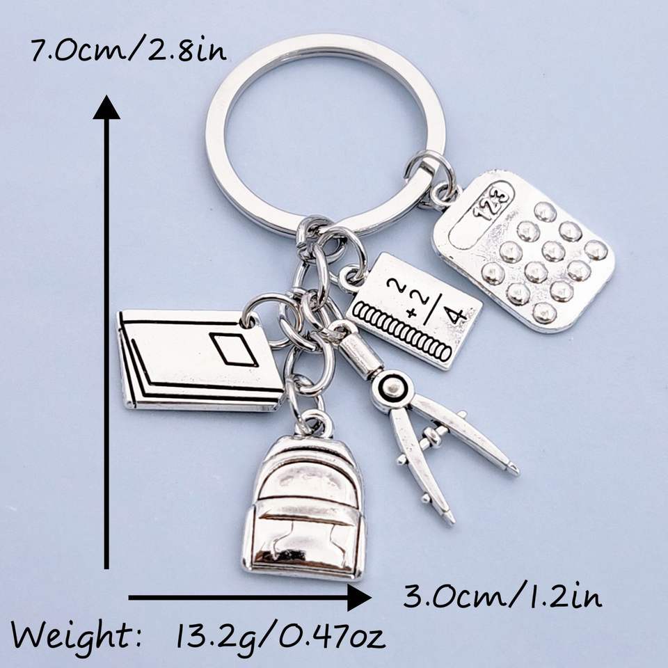 Accessoires de mode : Mini sac à dos pendentif en métal étanche, motif dessin animé, avec calculatrice, règle et livre – Cadeau pour la Fête des Enseignants et le début du nouveau semestre