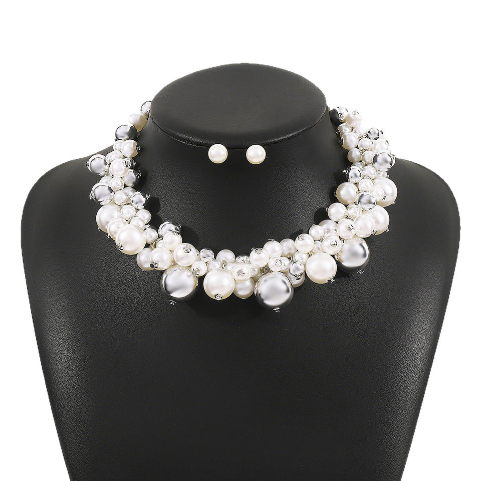 Accessoire de mode - Magnifique collier court en perles pour les événements formels. Ensemble comprenant des boucles d'oreilles et un collier en perles.