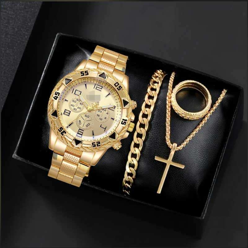 Nom du produit:Ensemble montre, collier, bracelet et bague pour homme