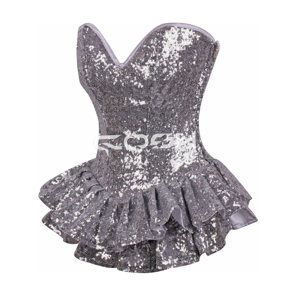 Robe corset en sequins argentés, mode et tenue de club | Commandes personnalisées en gros disponibles