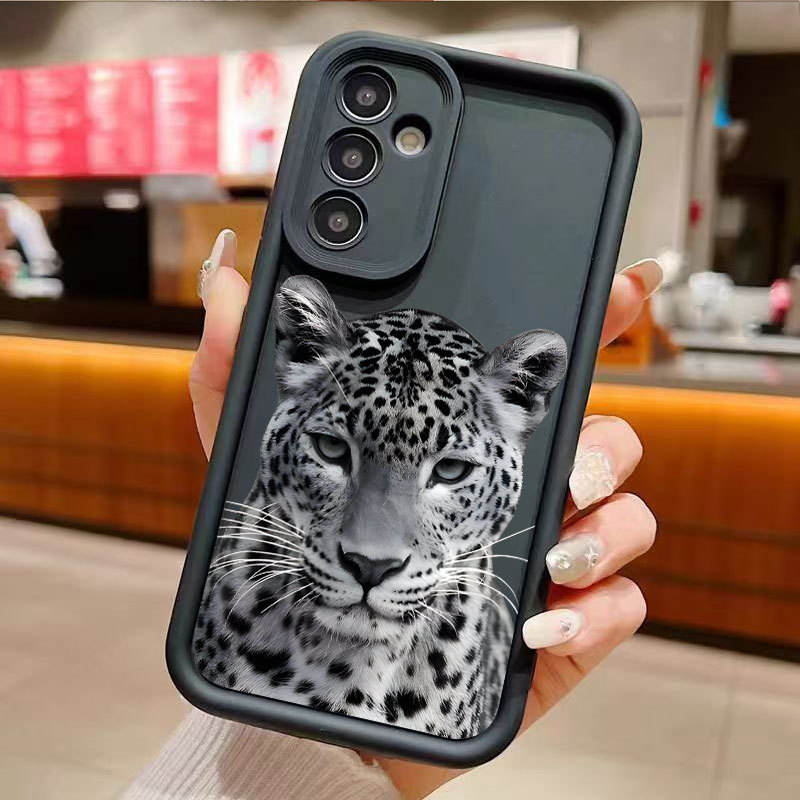 Coque de téléphone portable antichoc en TPU avec motif léopard et design d'objectif en forme d'échelle pour Samsung A03S A04 A05 A05S A06 A12 A13