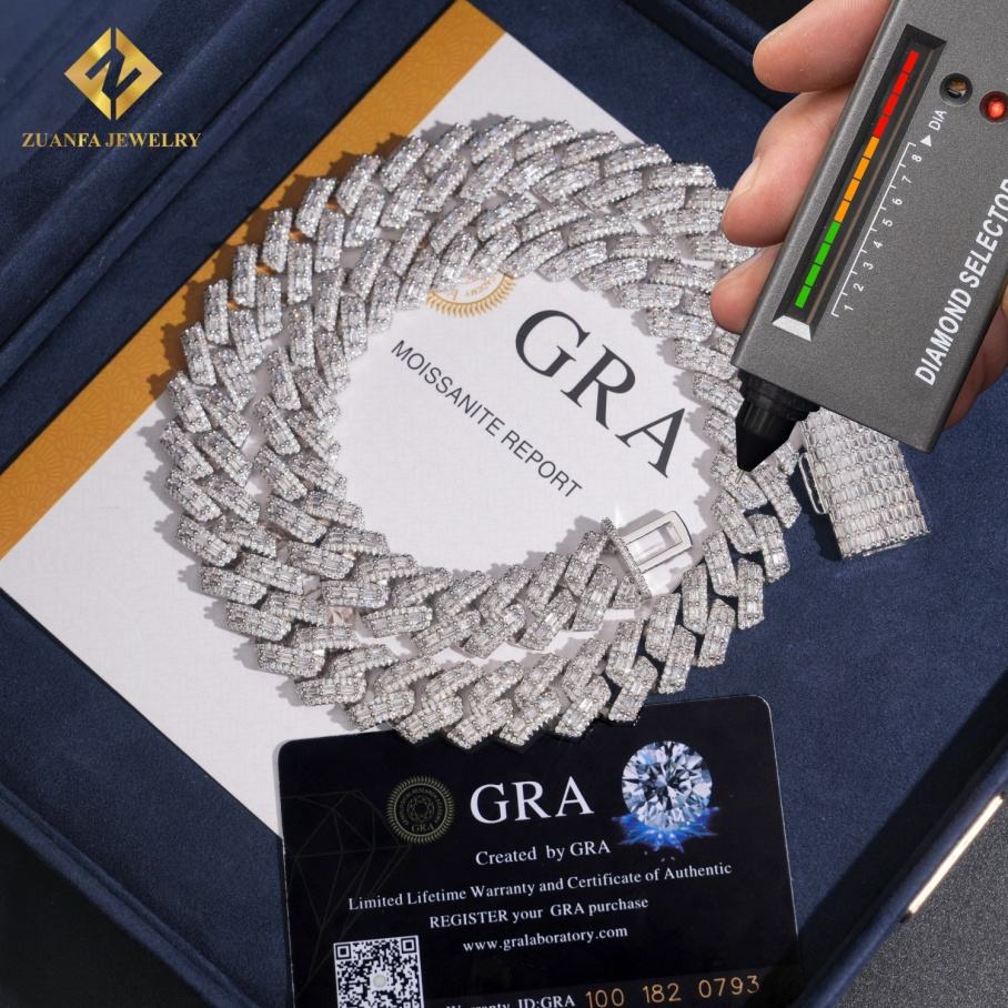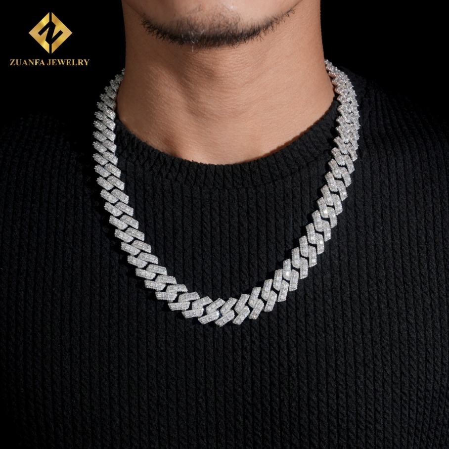 Chaîne cubaine Miami pour homme, style hip-hop, avec grosses pierres de 18 mm, sertie de diamants de laboratoire Moissanite VVS, fabrication sur mesure