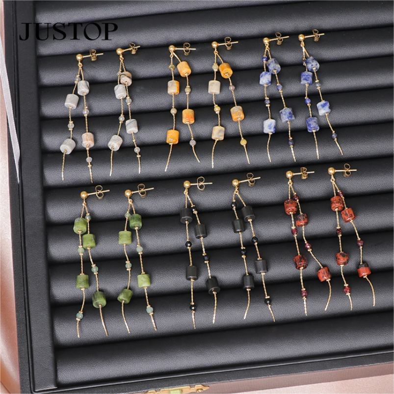 Bijoux fantaisie en acier inoxydable plaqué or, perles naturelles, boucles d'oreilles pendantes faites à la main, délicates, cristal, bohème, tendance, bijoux d'anniversaire