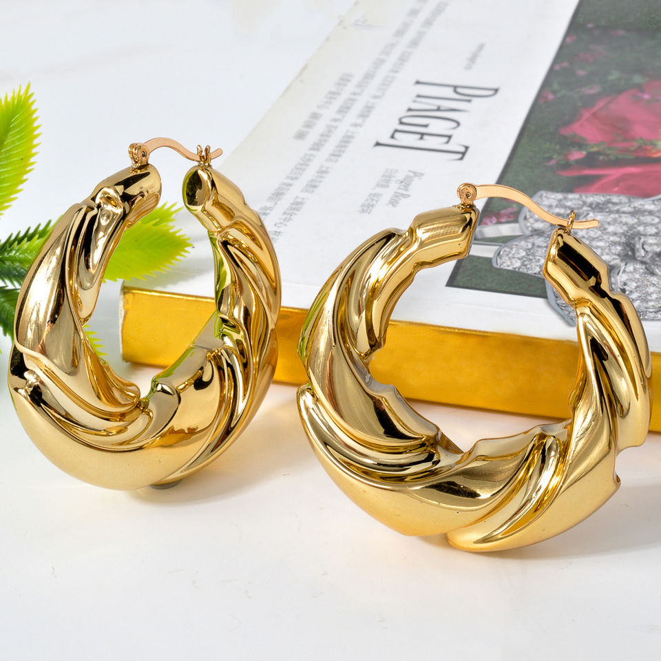 Boucles d'oreilles créoles torsadées en cuivre plaqué or 14 carats de haute qualité, style bohème tendance pour femmes