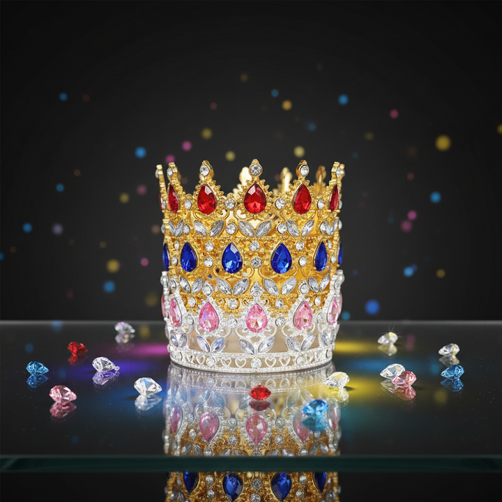 Couronne de reine en strass pour mariage, bouquet de fleurs, décoration de gâteau d'anniversaire, mode nuptiale