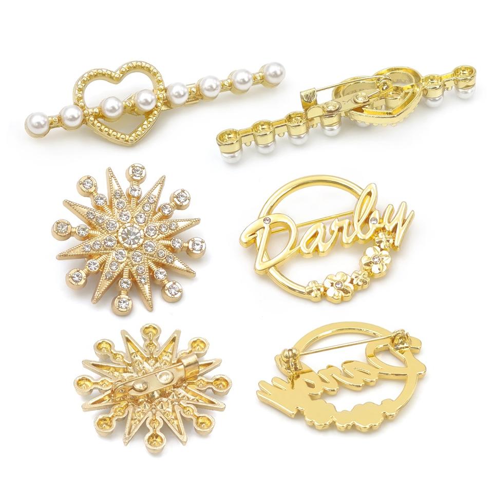 Fashion Brooches Women rhinestone brooch Silver Gold Alloy Jewelry Pearls Metal Custom Hijab brooches for women
