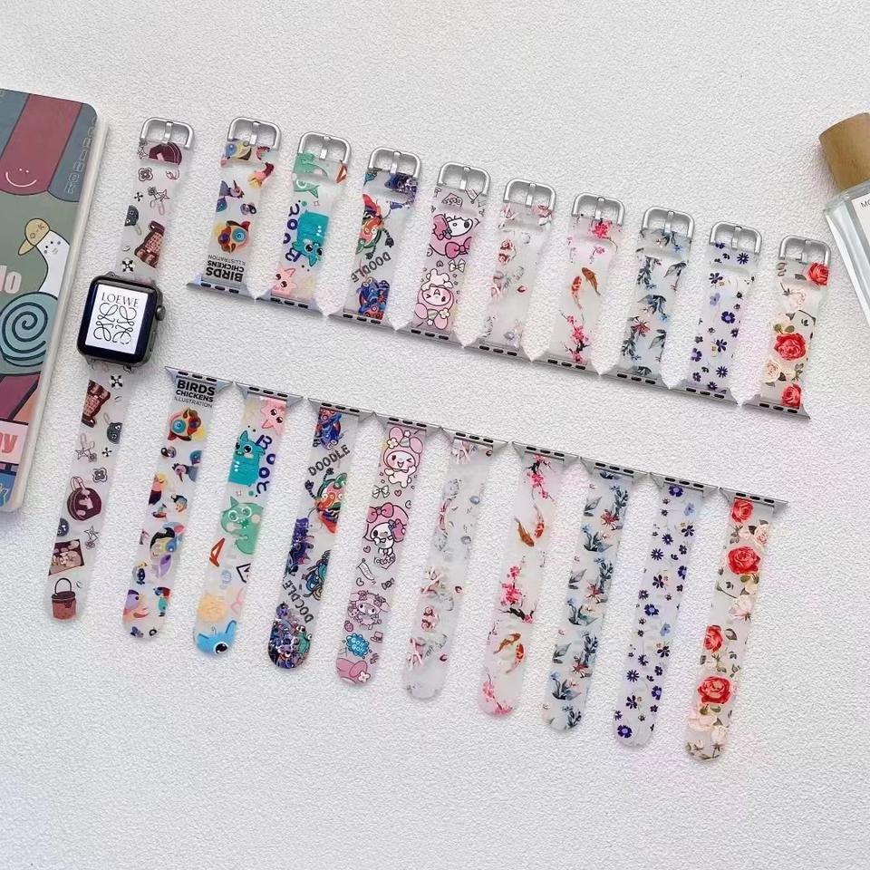 Bracelet en Silicone Transparent givré à motif de dessin animé pour Apple Watch 41mm 45mm toutes tailles de montre pour iWatch 7 6 5