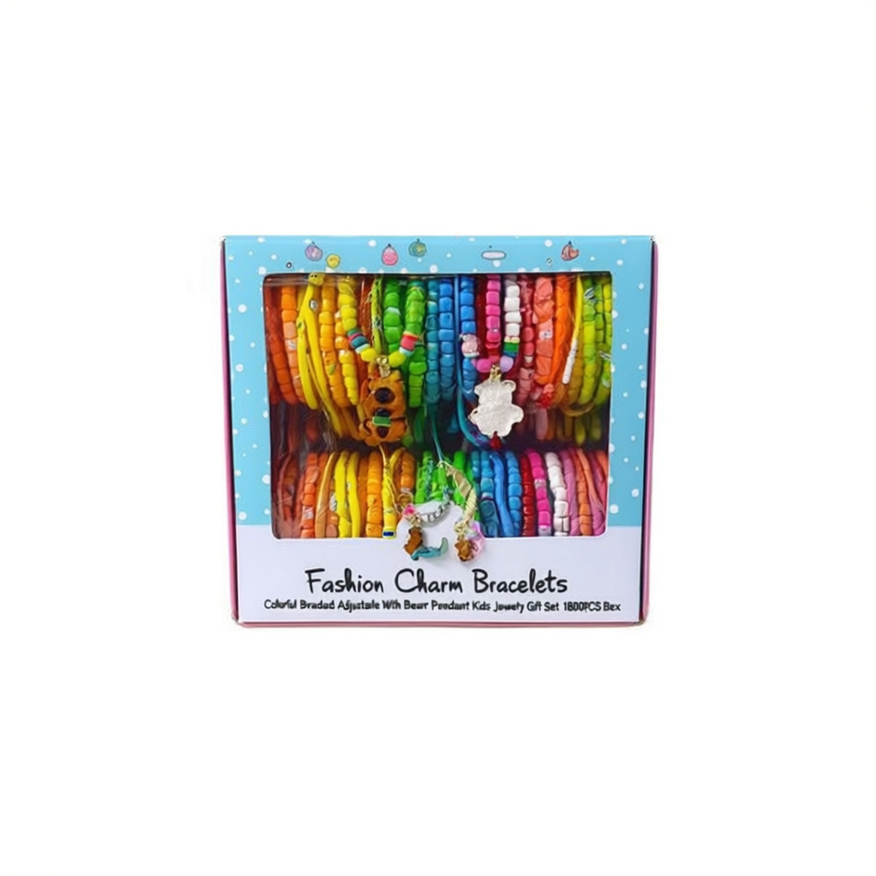 Bracelets à breloques tendance, colorés, perlés, ajustables avec pendentif ours, coffret cadeau de bijoux pour enfants, 1800 pièces