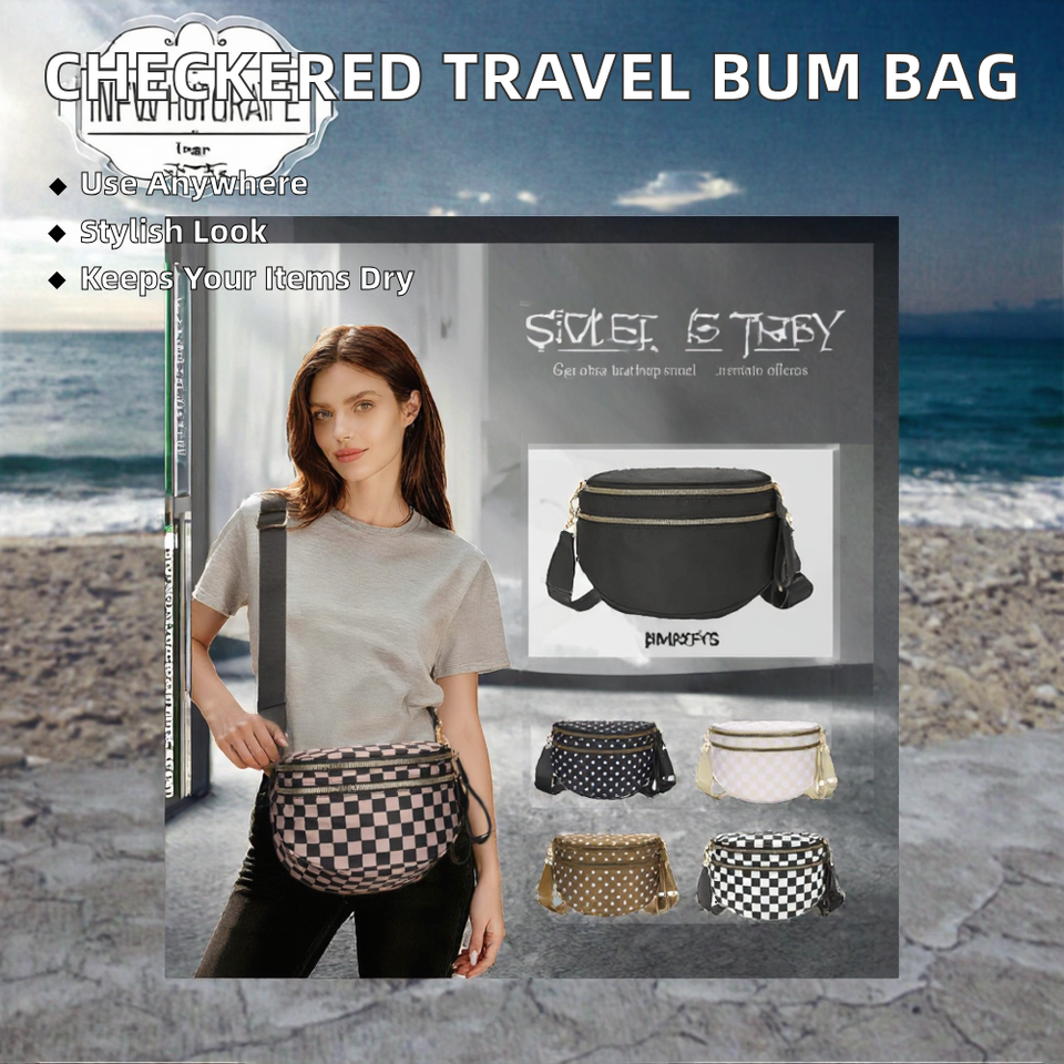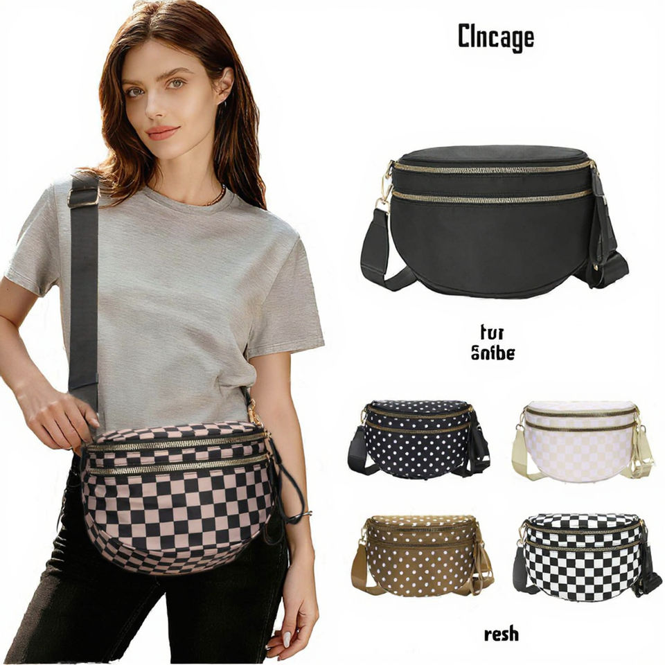 Sac banane et bandoulière tendance en polyester imperméable à carreaux avec fermeture éclair, pour voyage, randonnée, grande taille