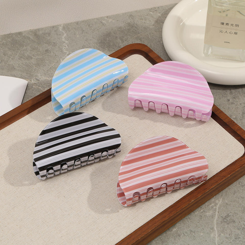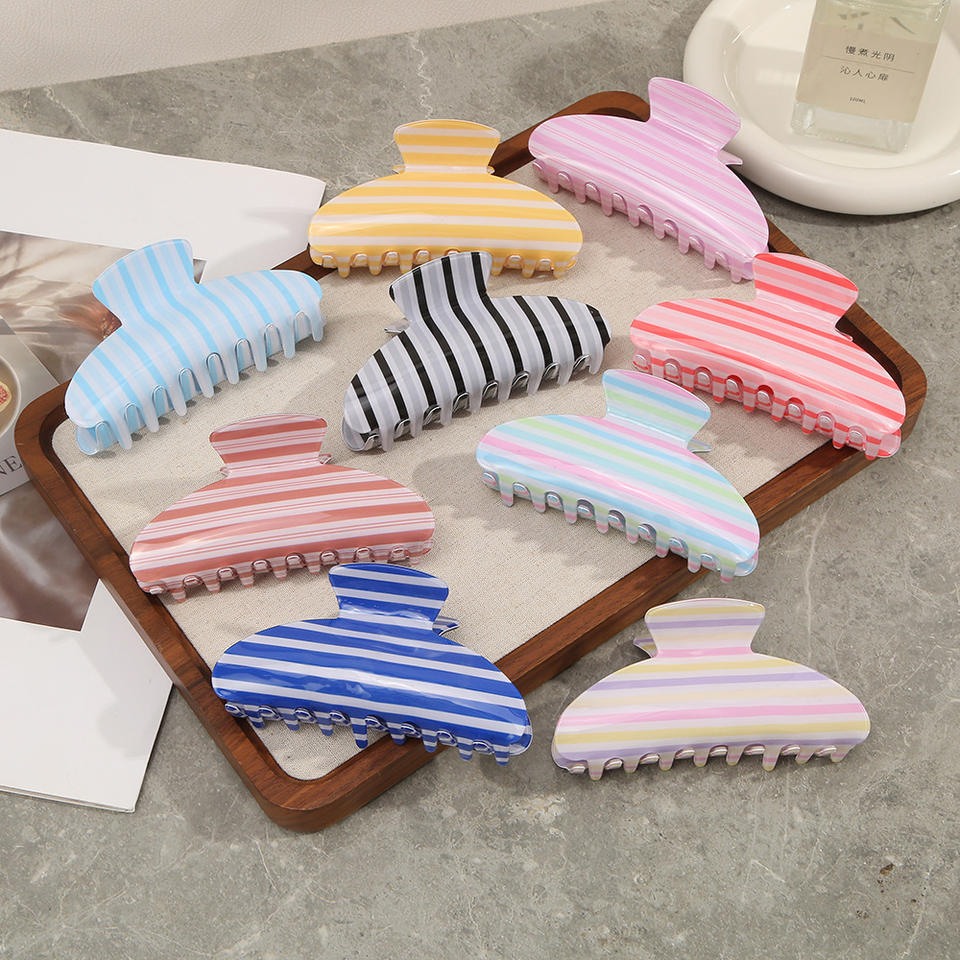 Fashion Classic Candy Color Stripe Pattern Plastic Acrylic Claw Clip Custom Large Girls Hair Clip Sweet Simple Design Clip