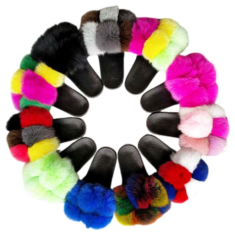 Mules, PANTOUFLES CHAUDES, Imprimé, Fourrure, Pantoufles en plein air, fur slipper slides sandals
