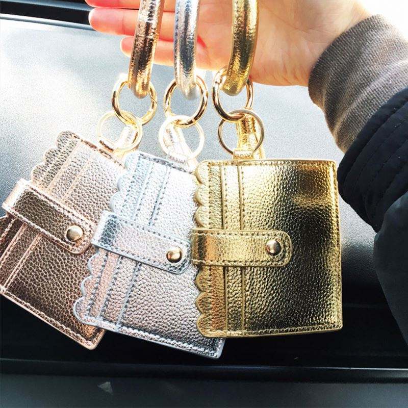 Perles de silicone colorées à la mode, porte-clés portefeuille avec bracelet en cuir PU Porte-clés porte-cartes/