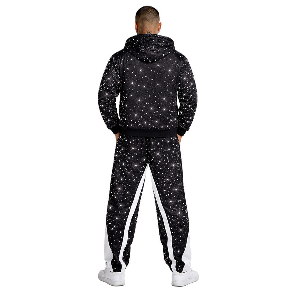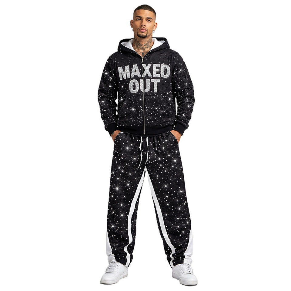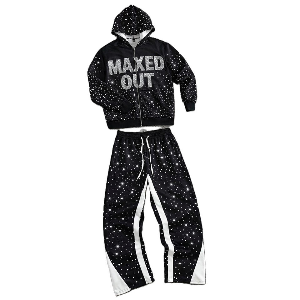 Fashion Crystal Embellished Full Zip Rhinestone Hoodies Joggers Sets Relaxed Fit Casual Winter Streetwear Wholesale Supplier