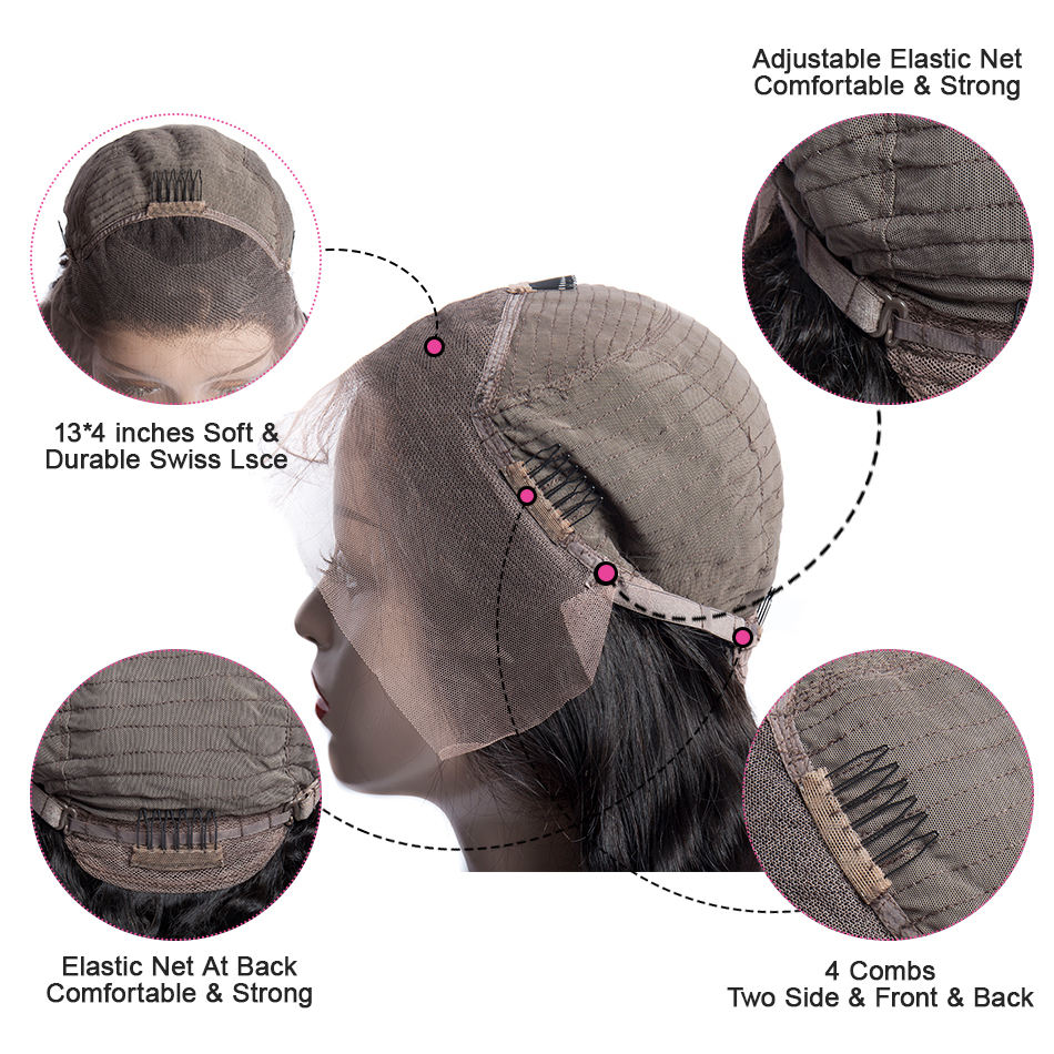Construction de casquette:13X4 dentelle avant, pleine dentelle, fait à la main, dentelle suisse, 4 peignes