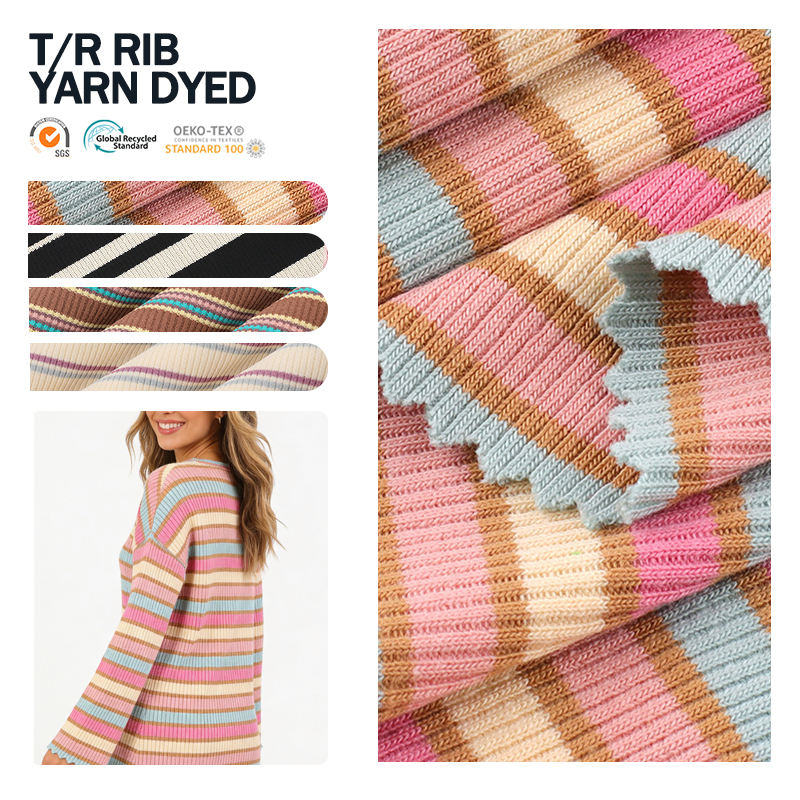 Tissu en fil teint côtelé TR 2x2 élastique, doux et durable, pour robes et pulls, design de mode personnalisé